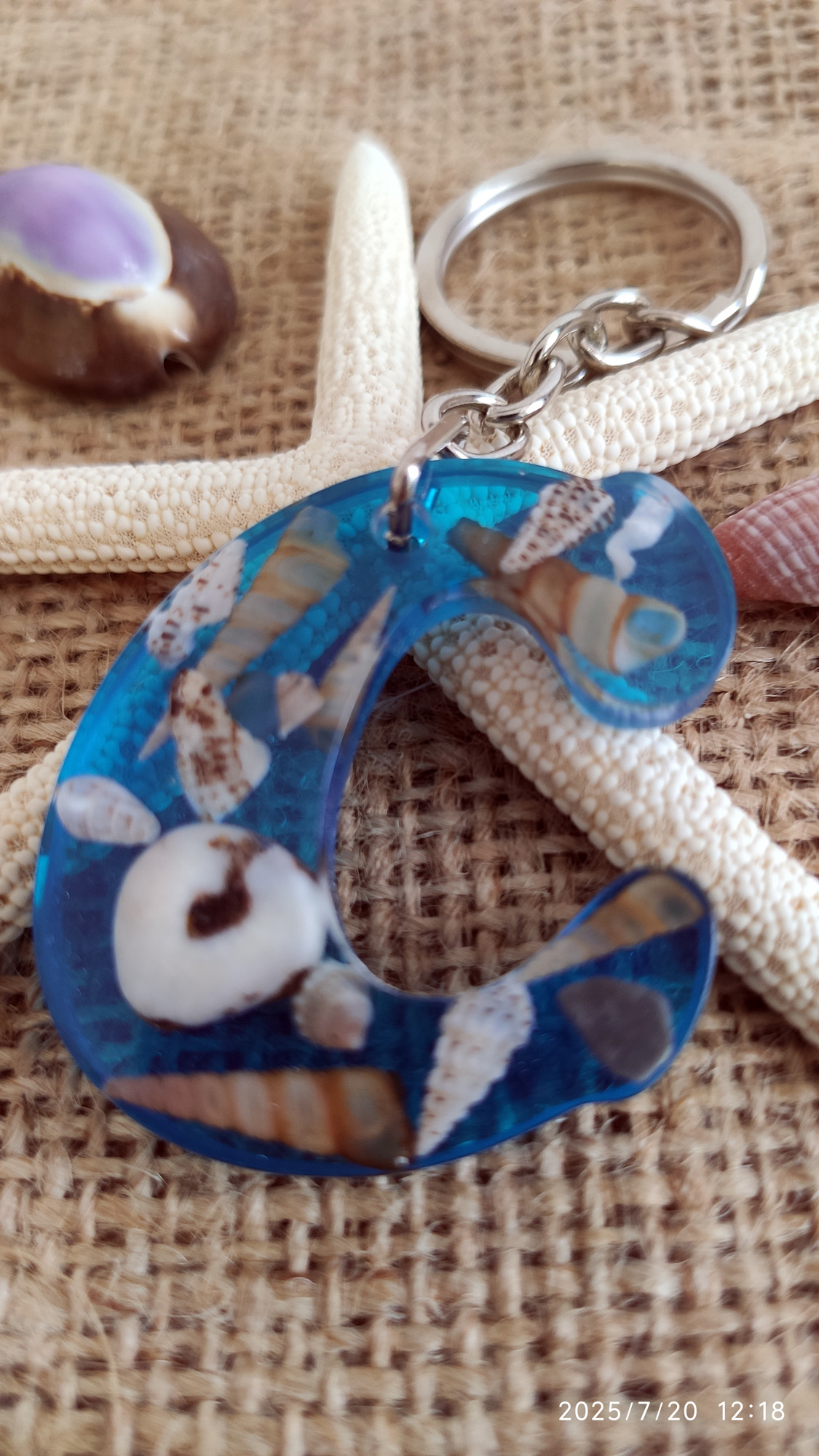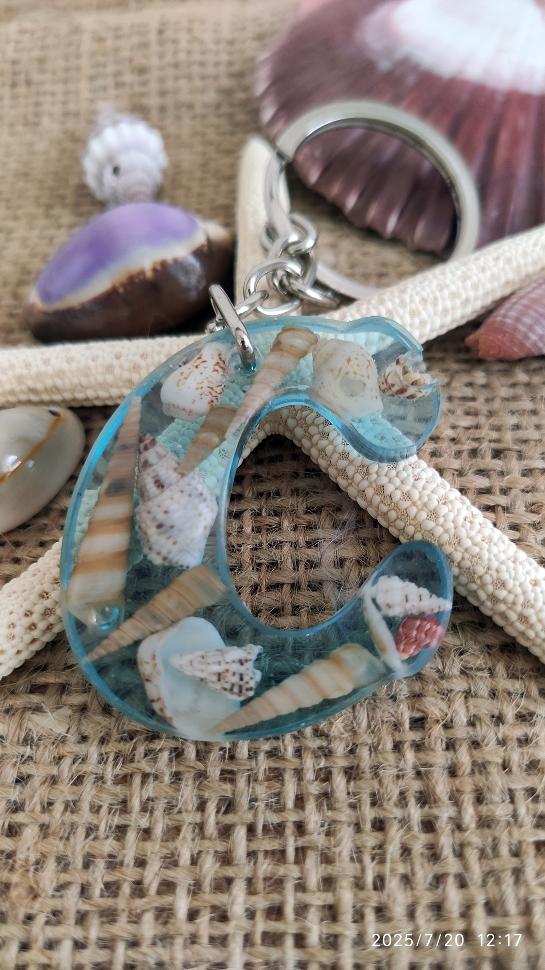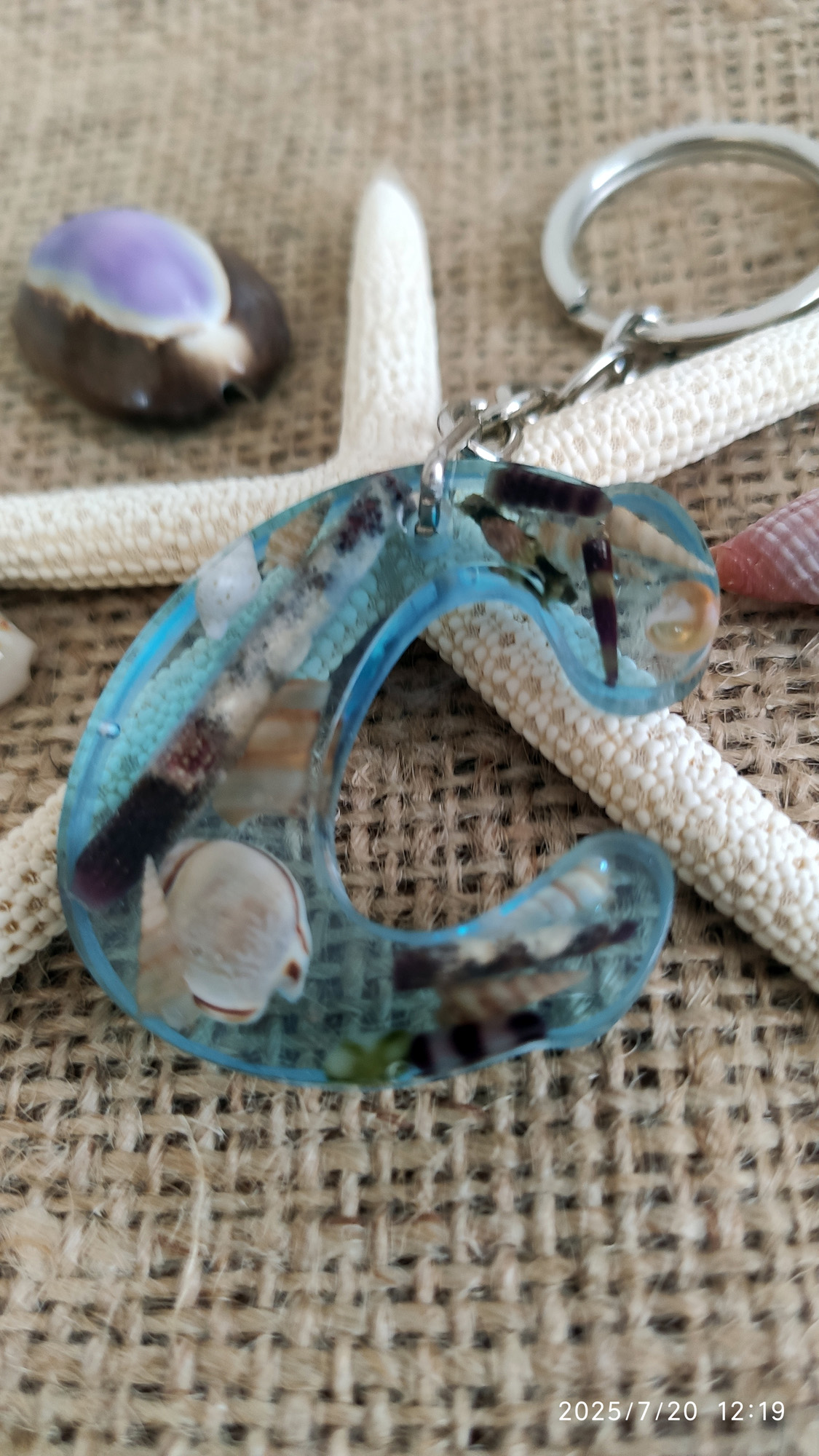 • Malzeme: Epoksi reçine, doğal kabuk, metal halka/zincir
