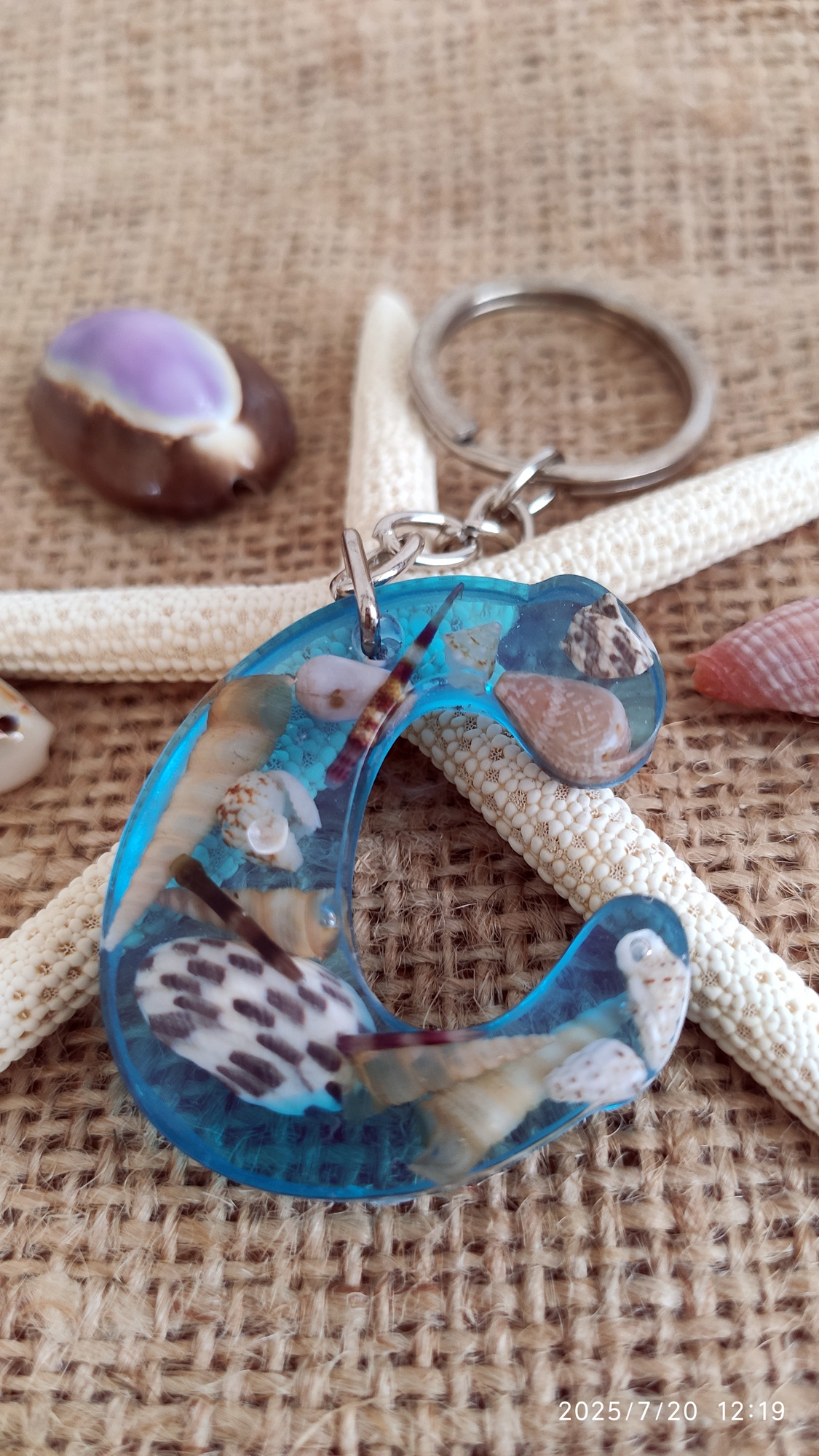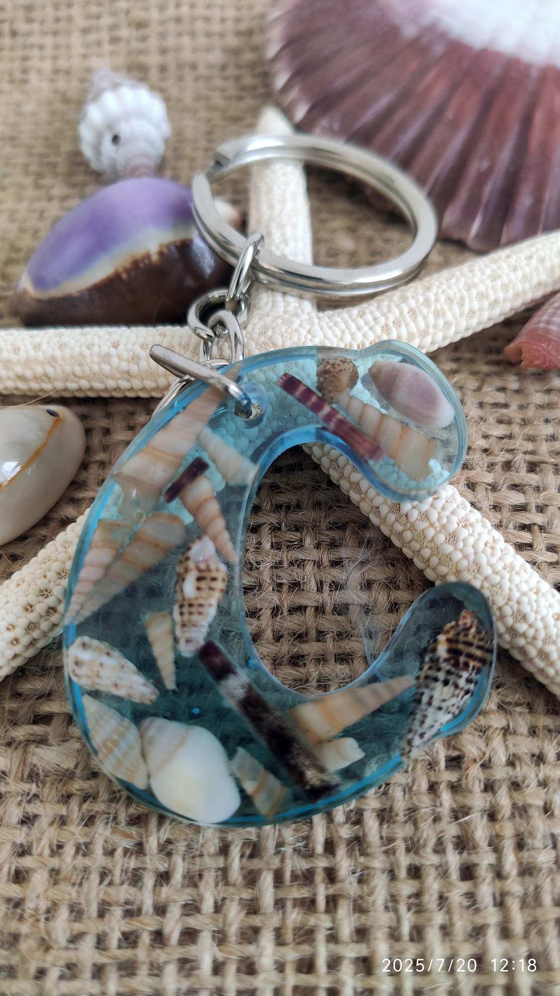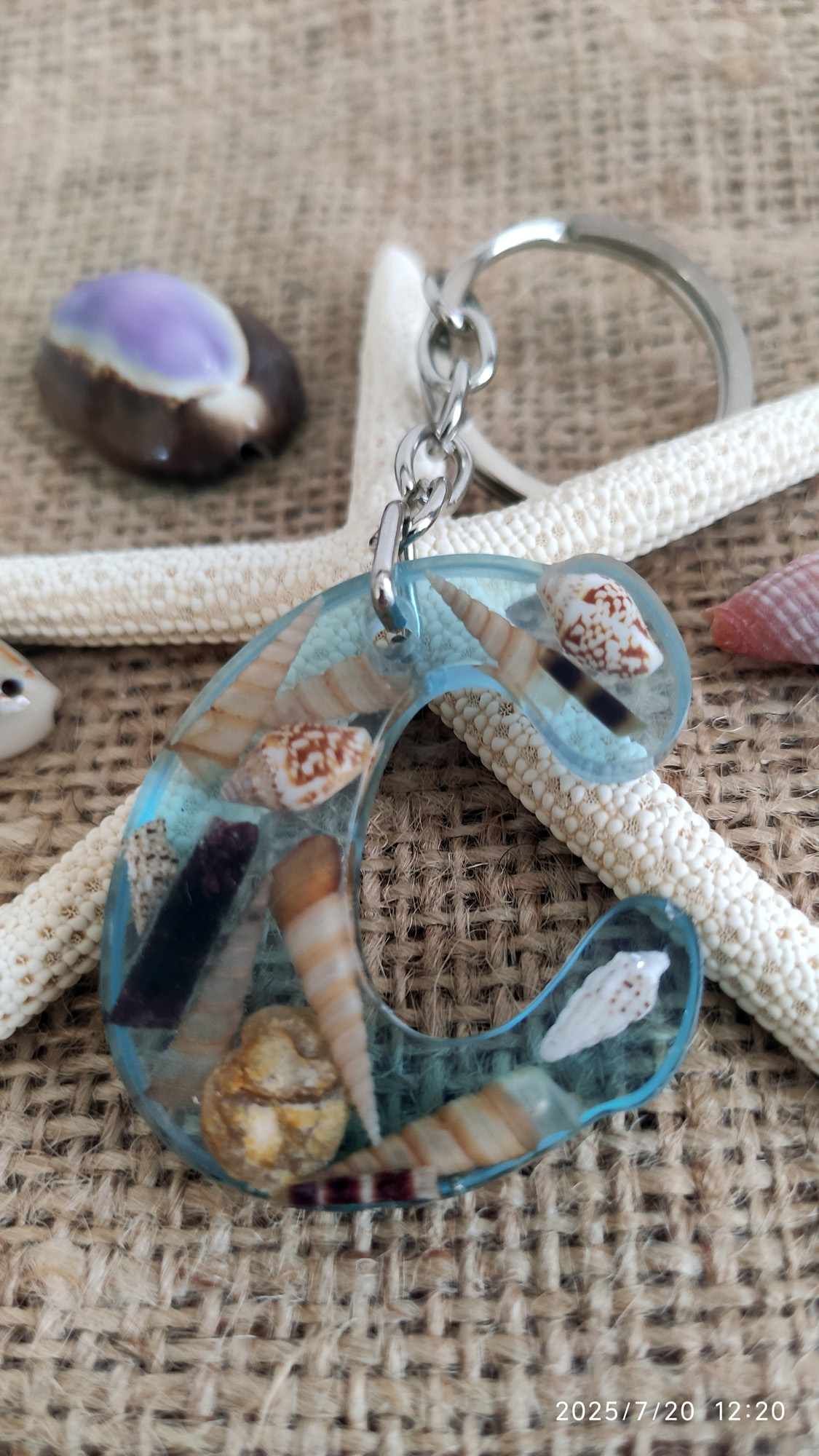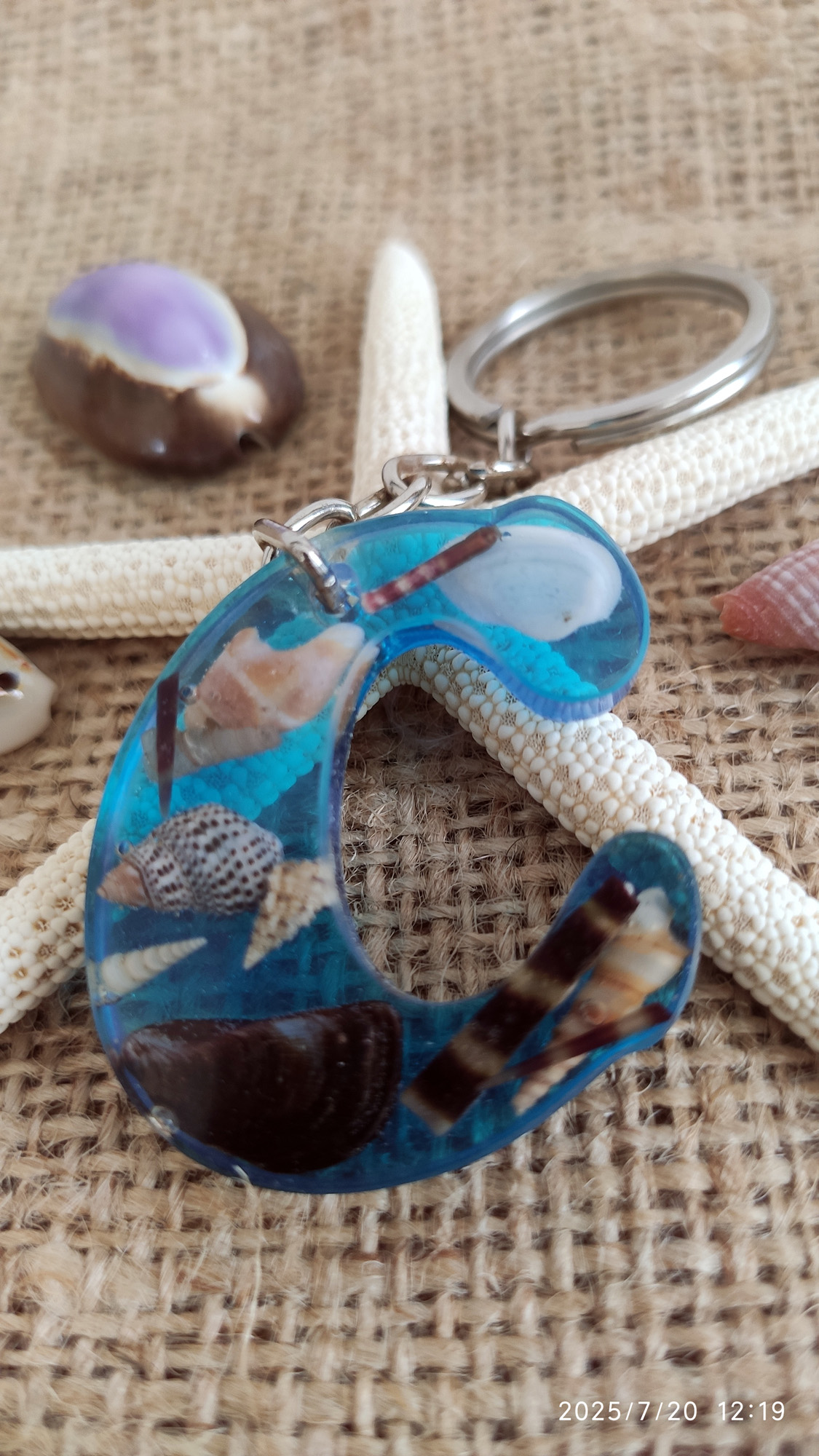 • Malzeme: Epoksi reçine, doğal kabuk, metal halka/zincir