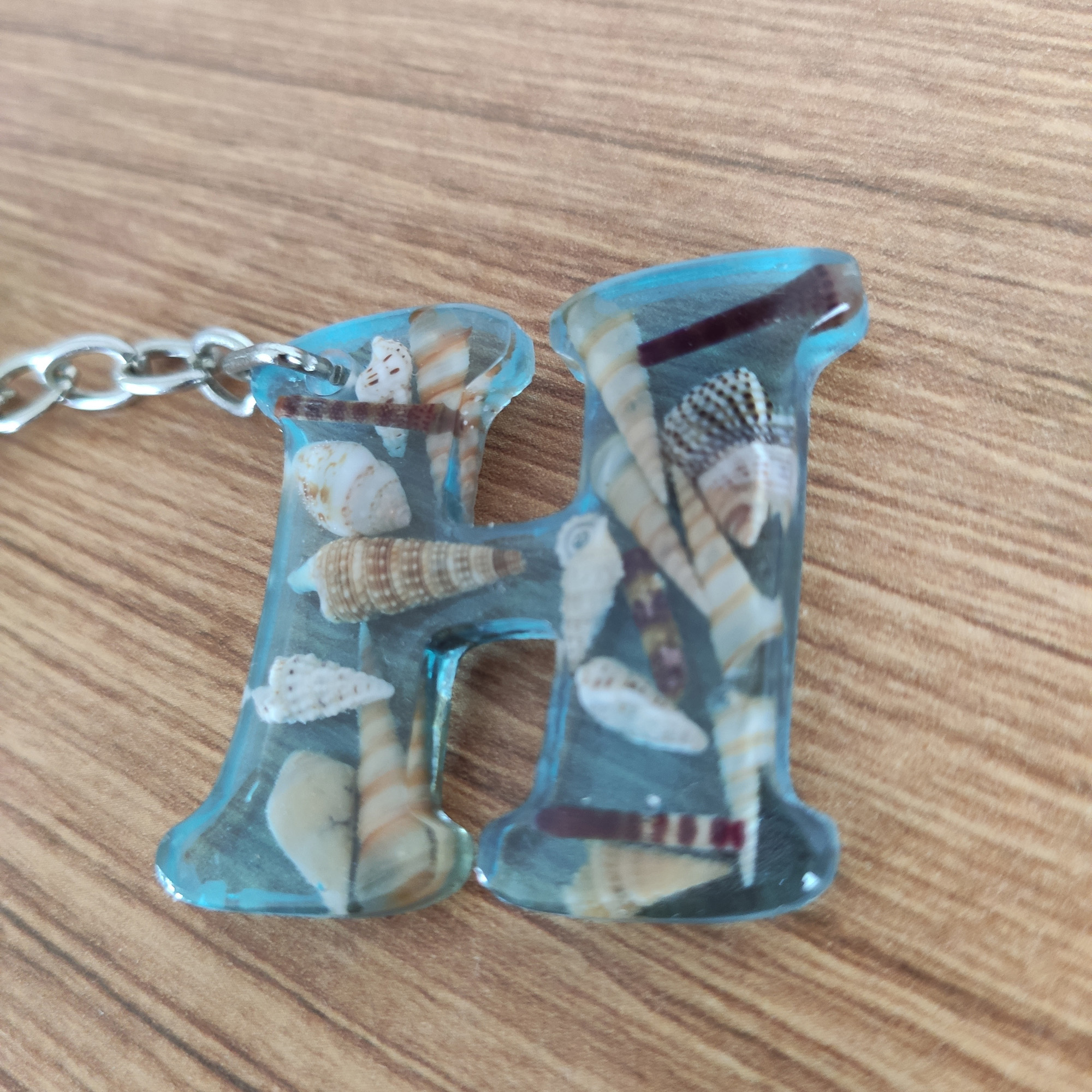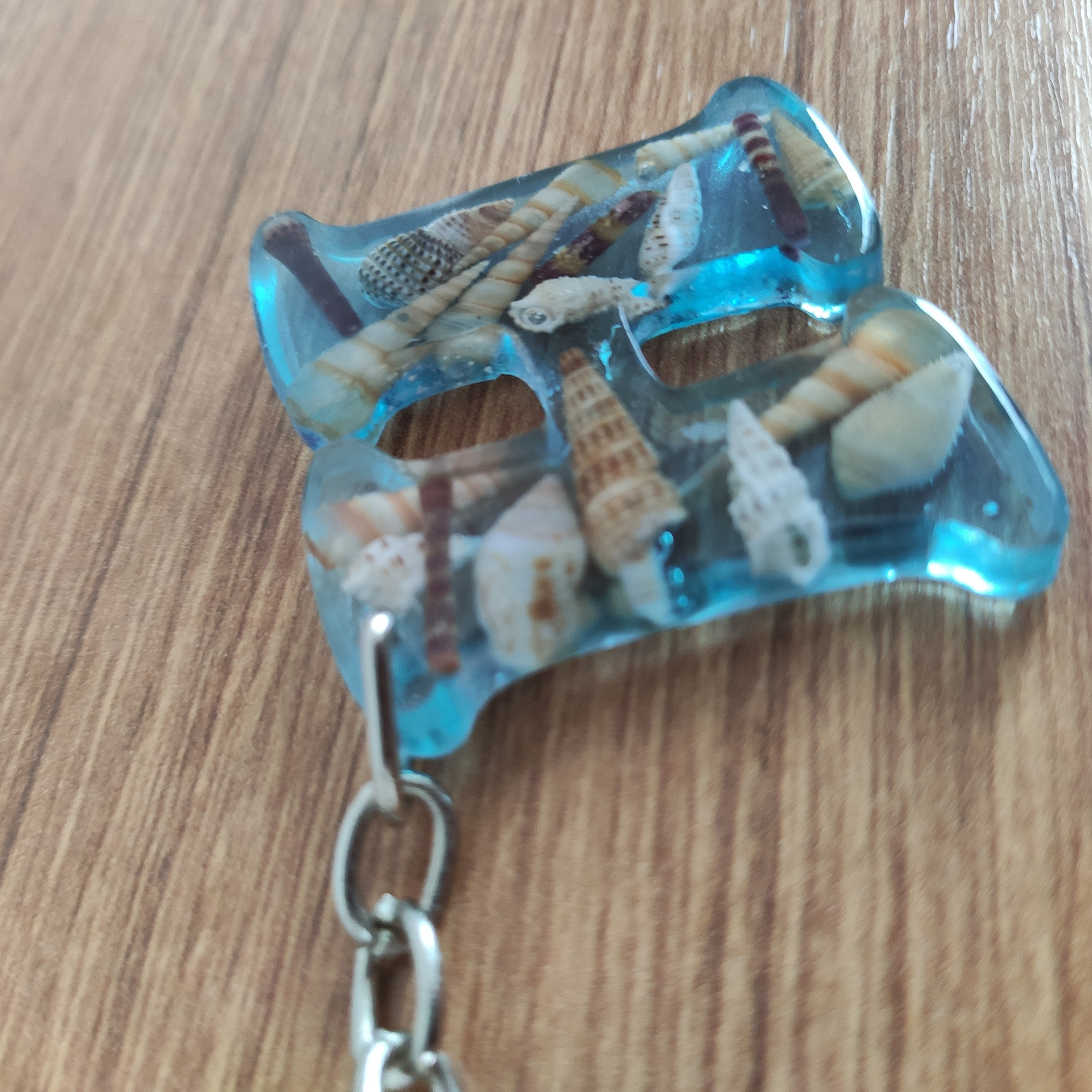 - Malzeme: Epoksi reçine, doğal kabuk, metal halka/zincir
