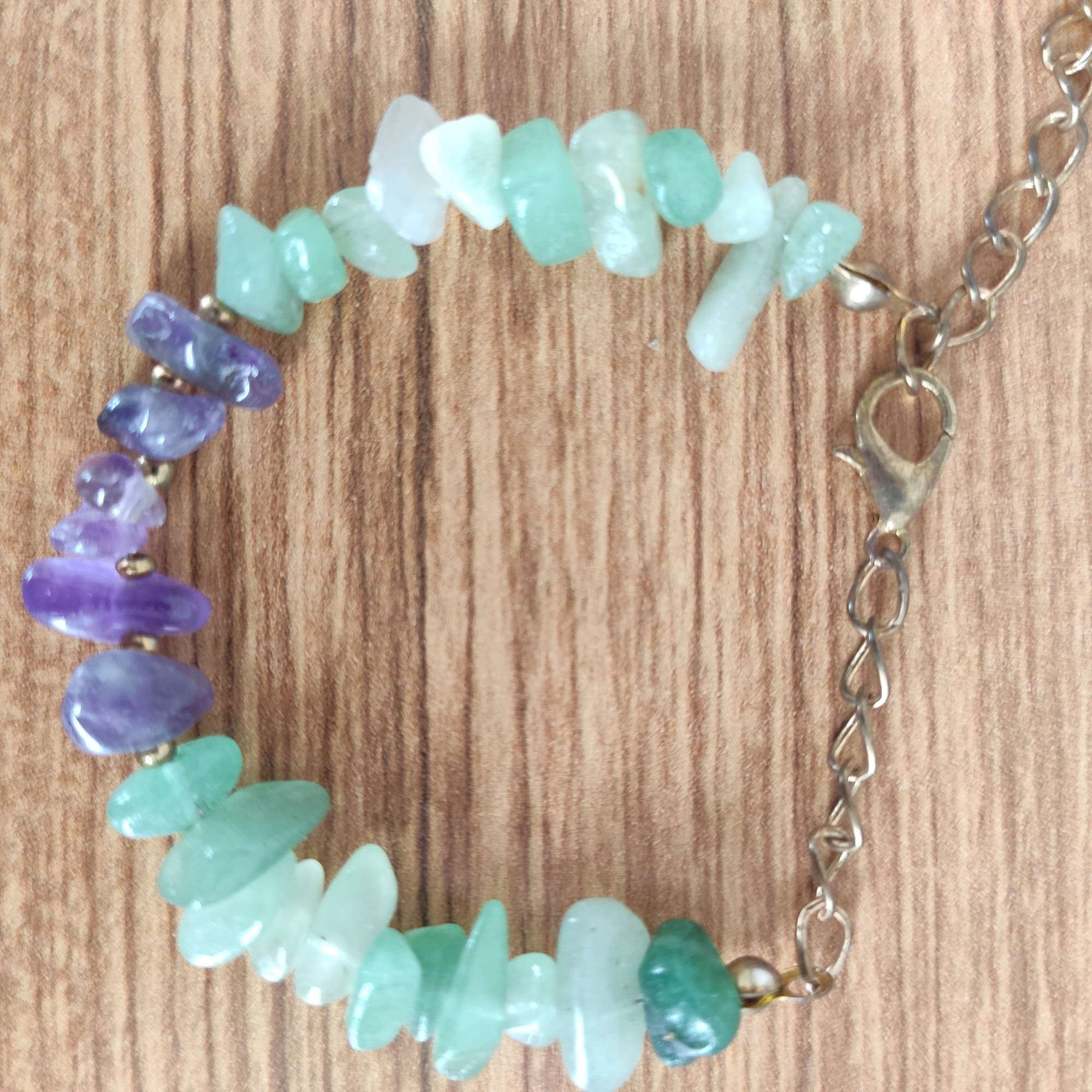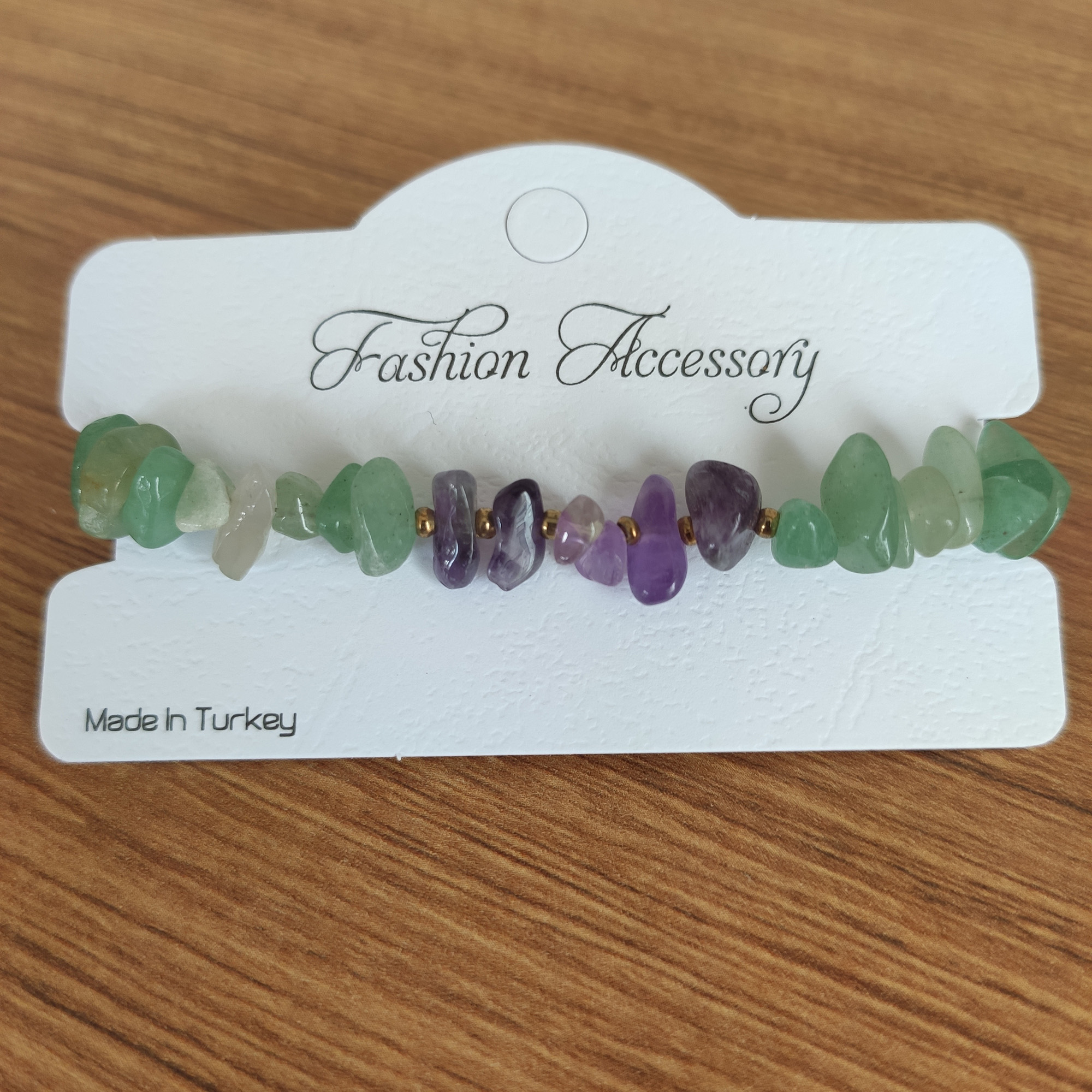 El yapımı bu bileklik, doğanın enerjisini yansıtan yeşil aventurin taşları ile modern heishi boncukların birleşiminden oluşuyor. Aventurin taşı, huzur ve denge sembolü olarak bilinirken, neon yeşil heishi boncuklar tasarıma genç, dinamik ve yazlık bir hava katıyor.