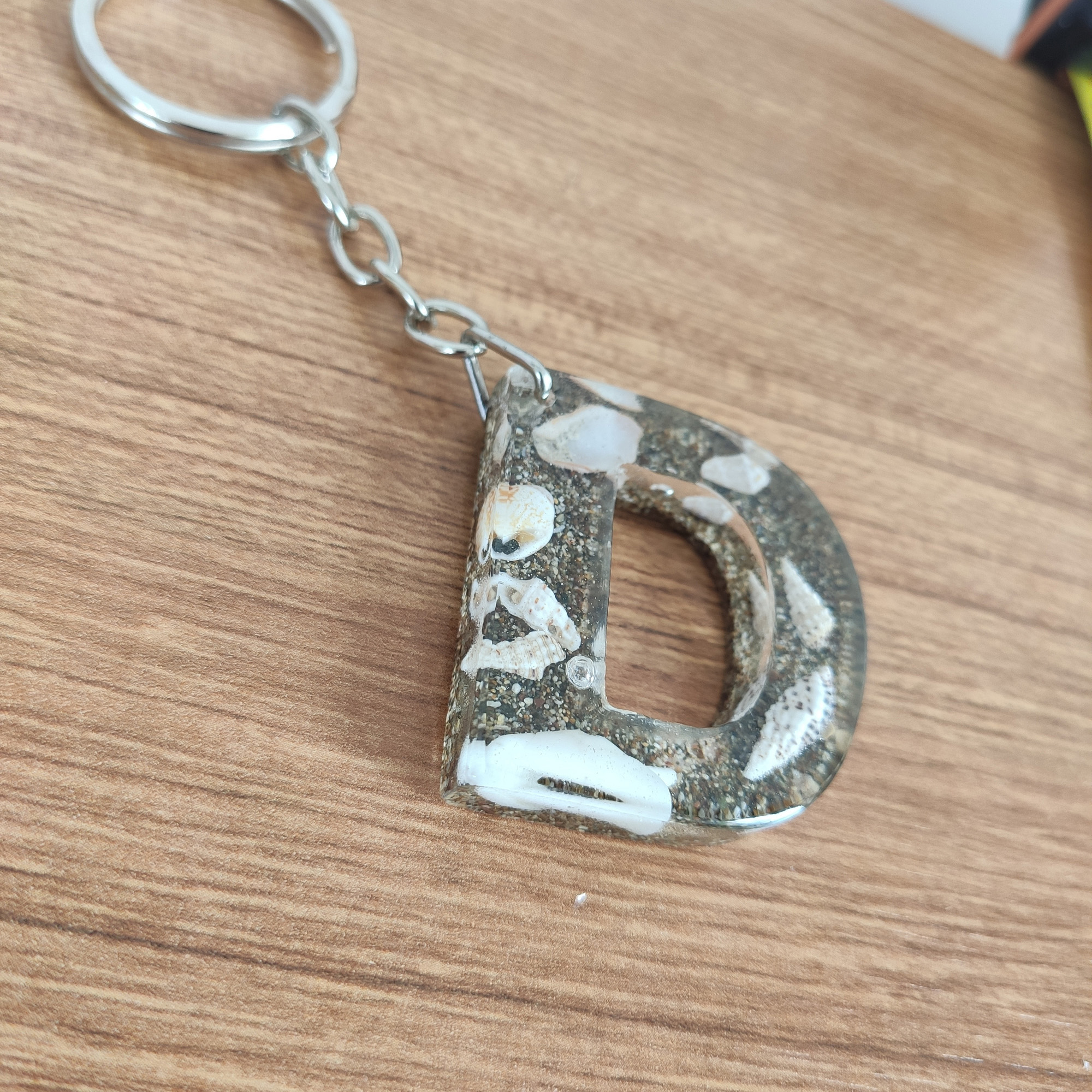 Deniz Kabuğu & Kumlu Harf “D” Anahtarlık & Kişiye Özel, Hediye Kutulu