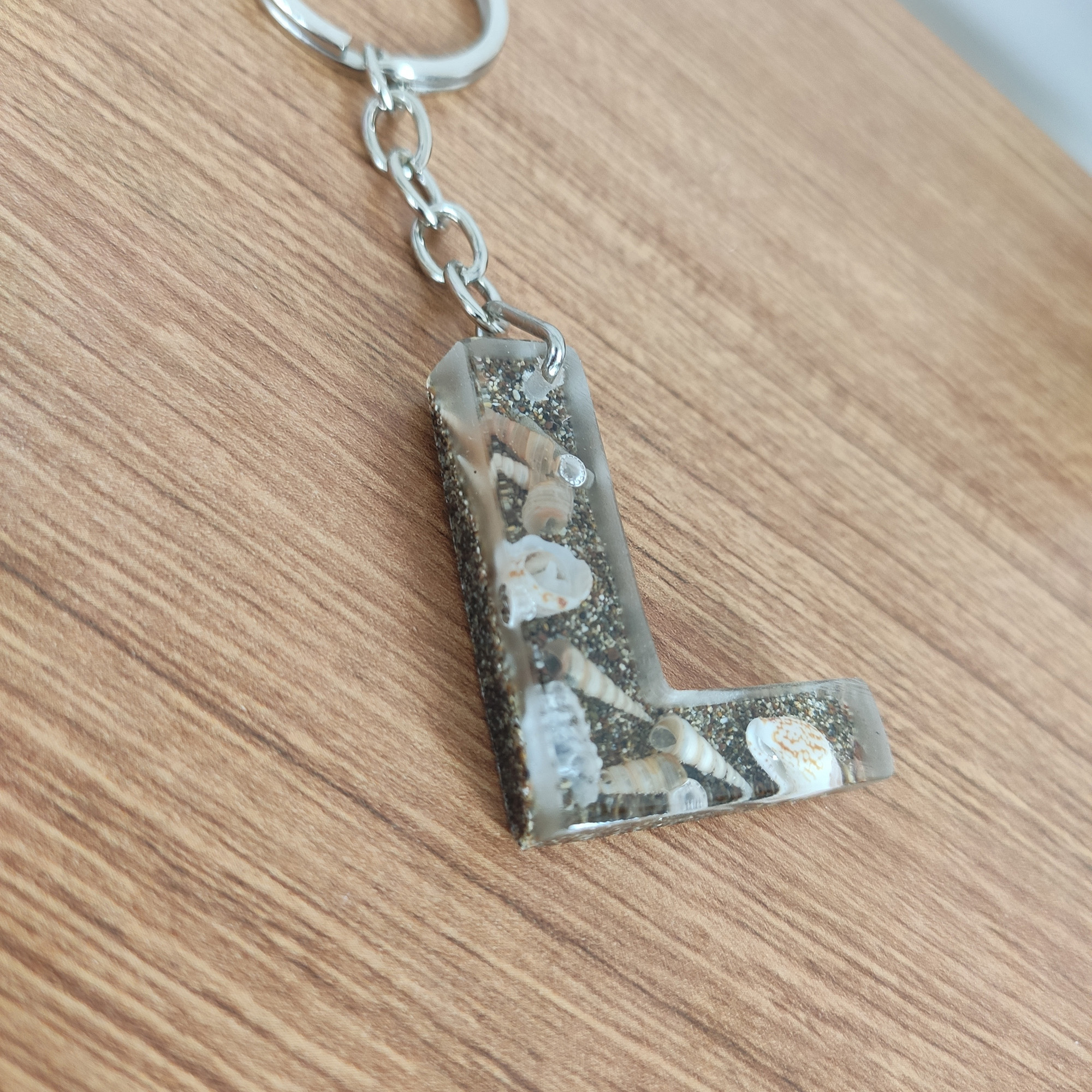 Deniz Kabuğu & Kumlu Harf “L” Anahtarlık & Kişiye Özel, Hediye Kutulu