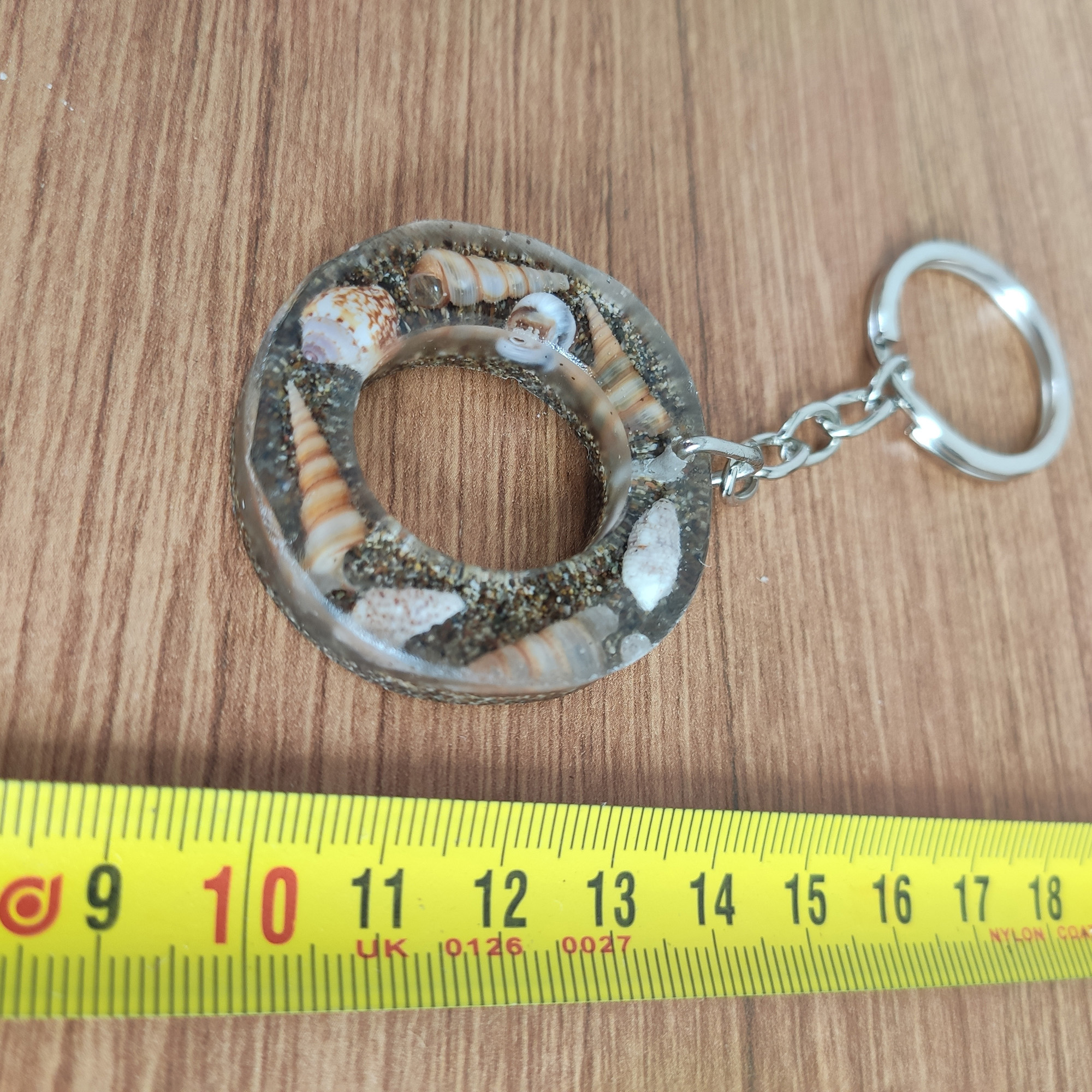 Bu anahtarlıkta, şeffaf epoksi reçinenin içinde gerçek deniz kabukları ve ince kum katmanları, adınızın/baş harfinizin formunda (A–Z) özenle kompoze edilir. Her parça tek kalıpta ve tek döküm yöntemiyle hazırlanır; döküm sonrası kademeli zımpara + parlatma yapılır ve metal aksamı elle monte edilir.
