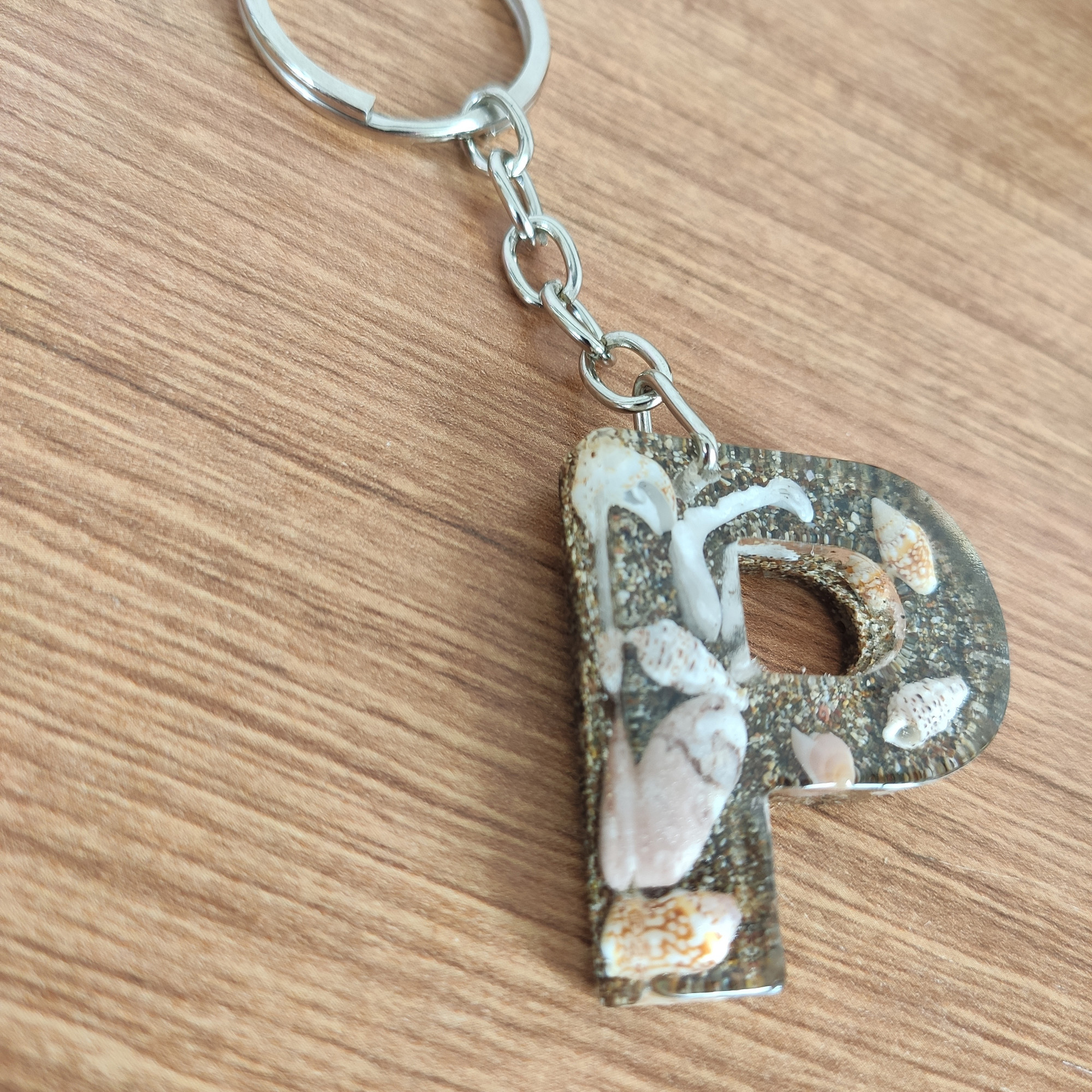 Deniz Kabuğu & Kumlu Harf “P” Anahtarlık & Kişiye Özel, Hediye Kutulu