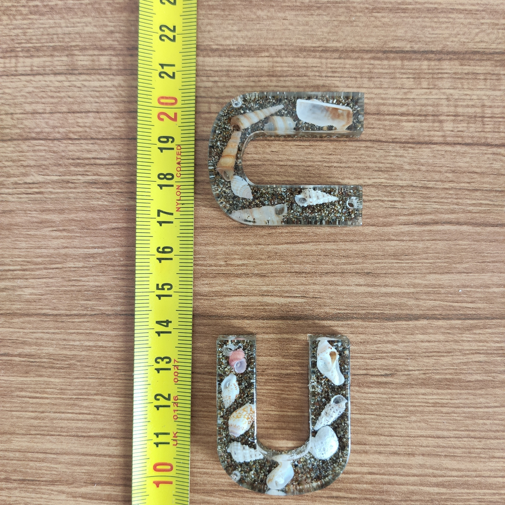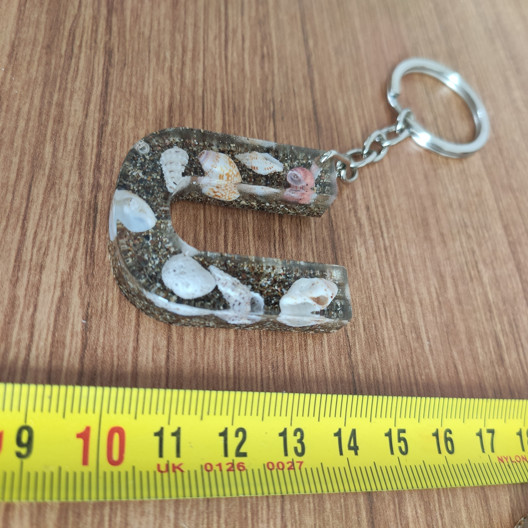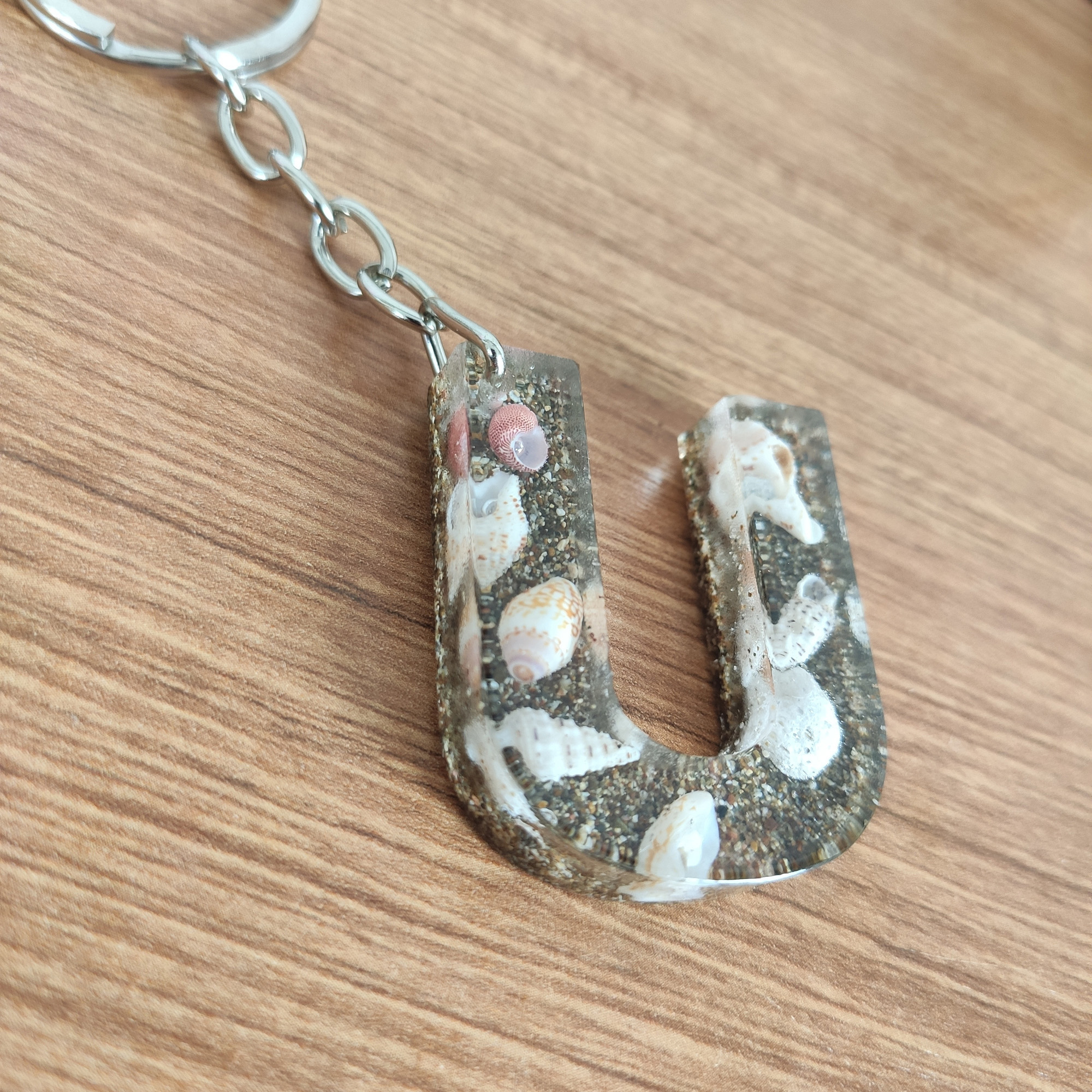 Deniz Kabuğu & Kumlu Harf “U” Anahtarlık & Kişiye Özel, Hediye Kutulu
