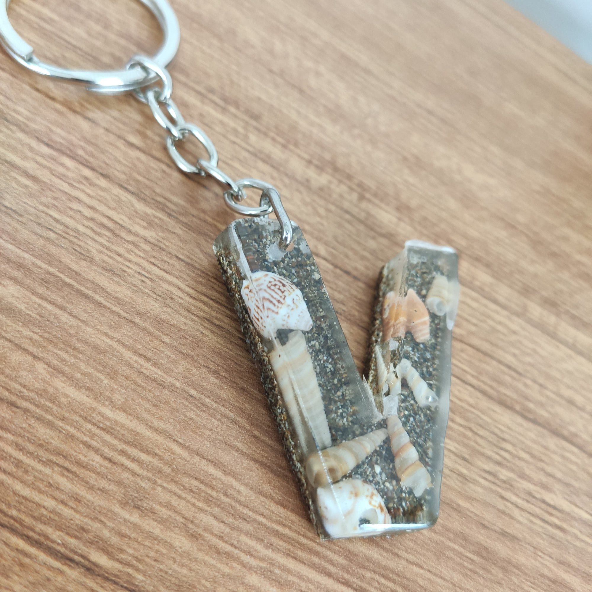 Deniz Kabuğu & Kumlu Harf “V” Anahtarlık & Kişiye Özel, Hediye Kutulu