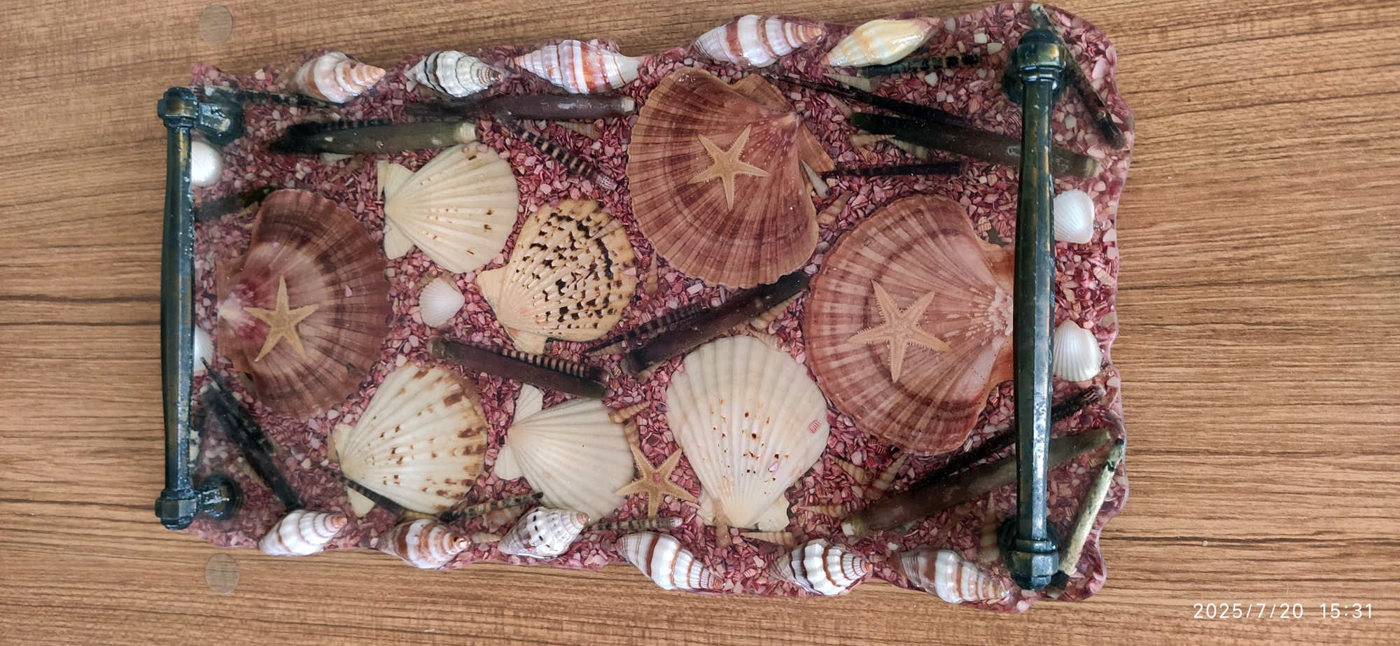 [OPTION 1: For Floral Tray] Featuring real, carefully dried flowers eternally preserved in crystal-clear resin, each tray captures a timeless moment of nature’s beauty. [OPTION 2: For Seashell Tray] Adorned with genuine seashells, starfish, and natural sands, this design brings the serene magic of the coastline right into your living space.