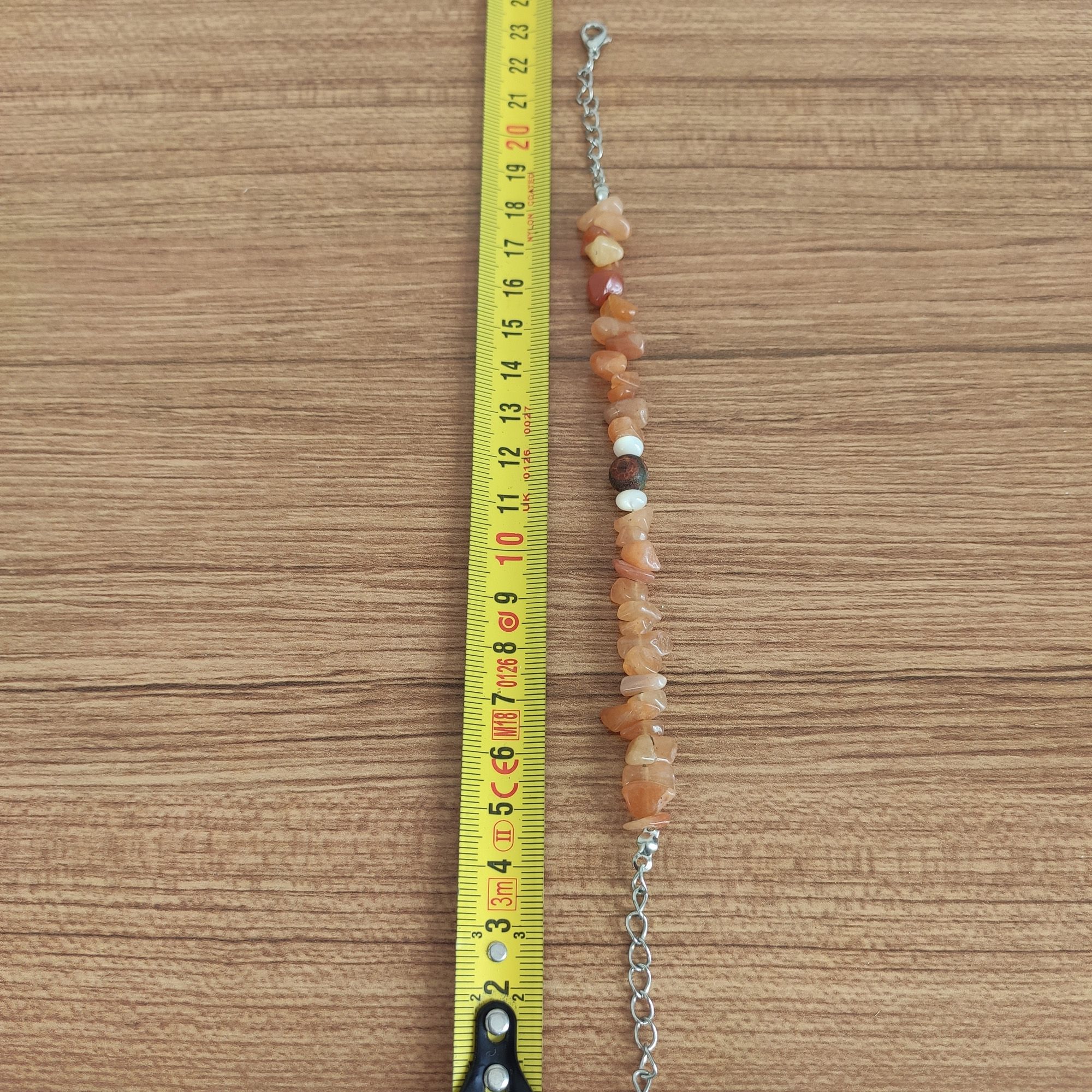 - Boyut: Bileklik standart olarak yaklaşık 18-20 cm uzunluğundadır ve ayarlanabilir zinciri sayesinde çoğu bileğe uyar.