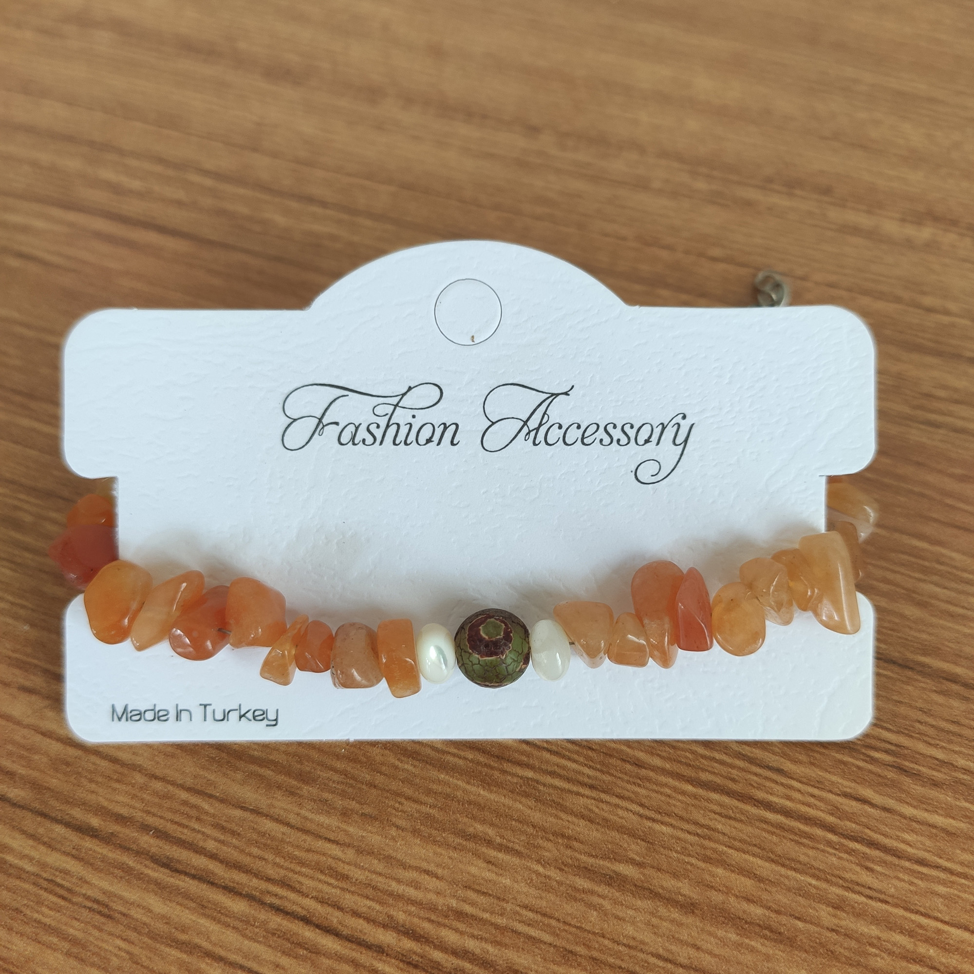 Bu bilekliklerde kullanılan taş, Kalsedon kuvarsının bir türü olan Akik (Agate) taşıdır. Özellikle bu sıcak turuncu, kırmızı ve bal rengi tonları nedeniyle Karnelyan (Carnelian) Akik olarak da bilinir. Adını, renginin benzediği Latince “carnem” (et) veya kiraz anlamına gelen “cornum” kelimesinden aldığı düşünülmektedir. Başta Brezilya, Hindistan, Mısır ve Uruguay olmak üzere dünyanın birçok yerinde çıkarılmaktadır.