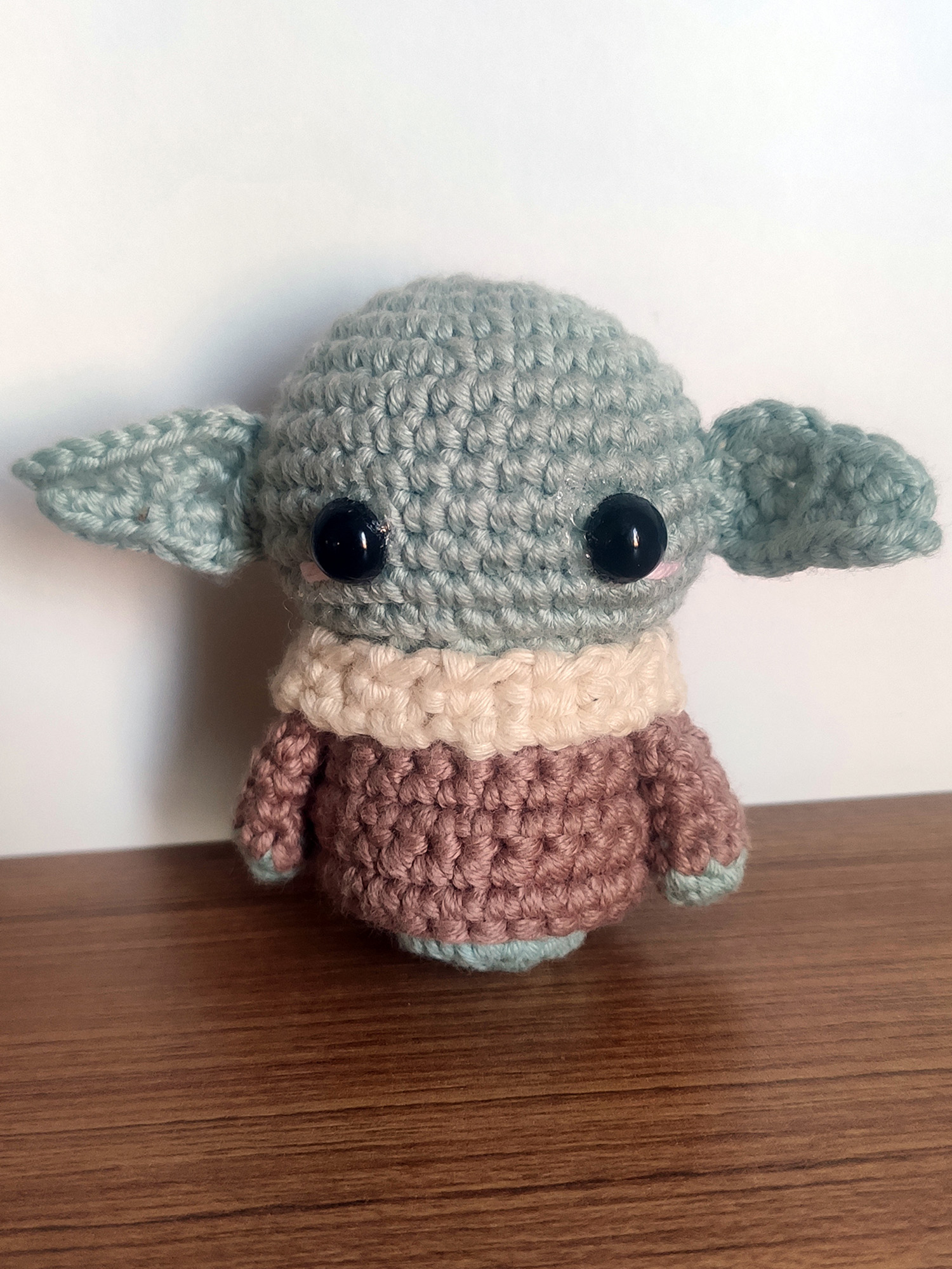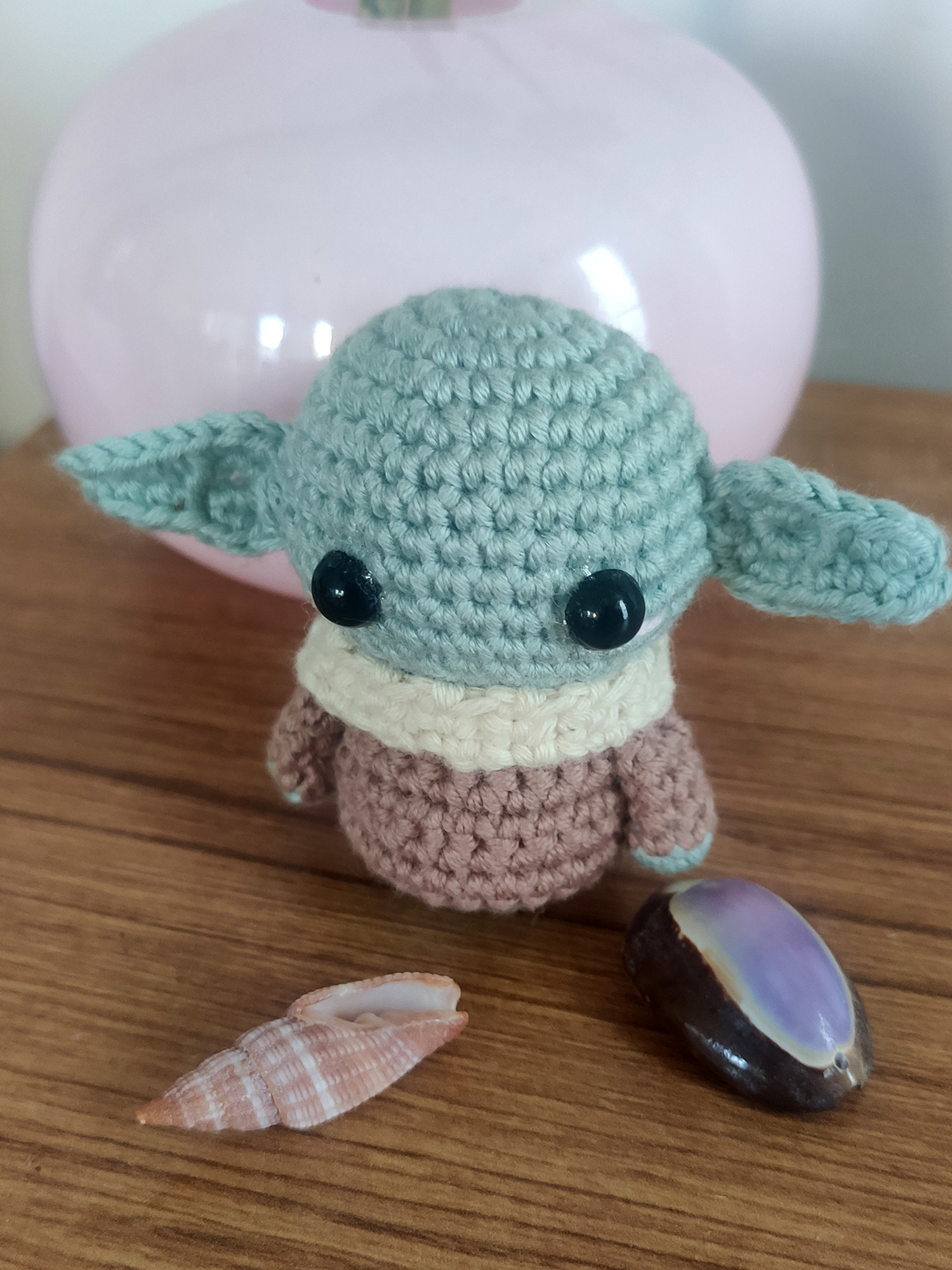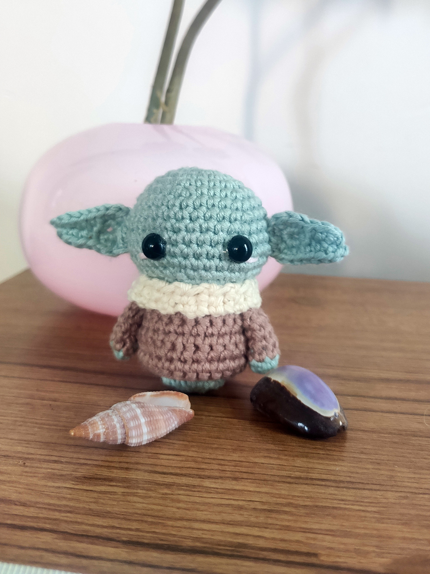 Çok uzak bir galaksinin en sevilen ve en sevimli karakteri, şimdi el yapımı amigurumi figürüyle evinize veya ofisinize neşe katmaya geliyor! Kocaman masum gözleri, ikonik kulakları ve sıcacık cübbesiyle bu minik dost, her yaştan bilim kurgu hayranı için mükemmel bir hediye ve koleksiyon parçasıdır.