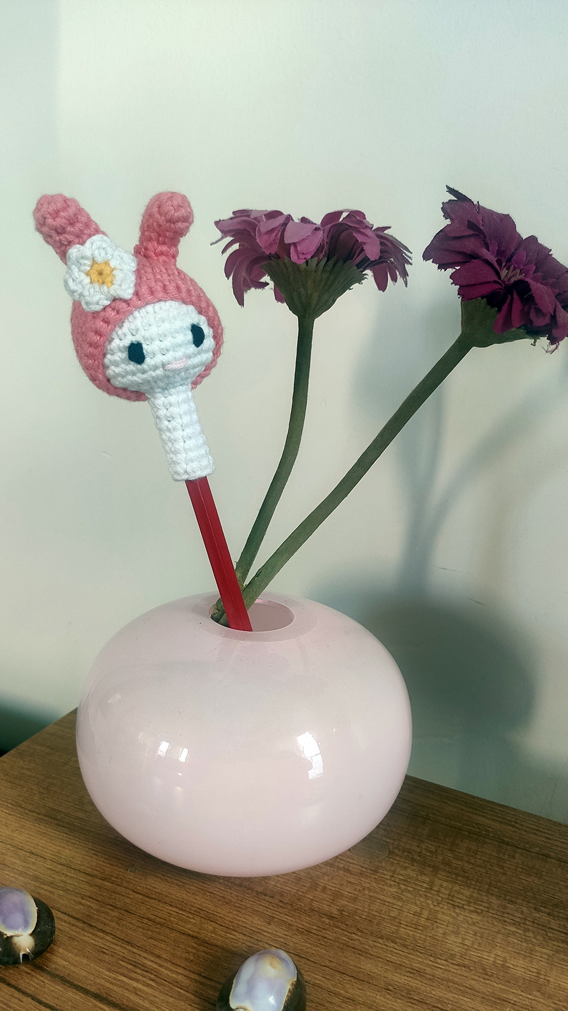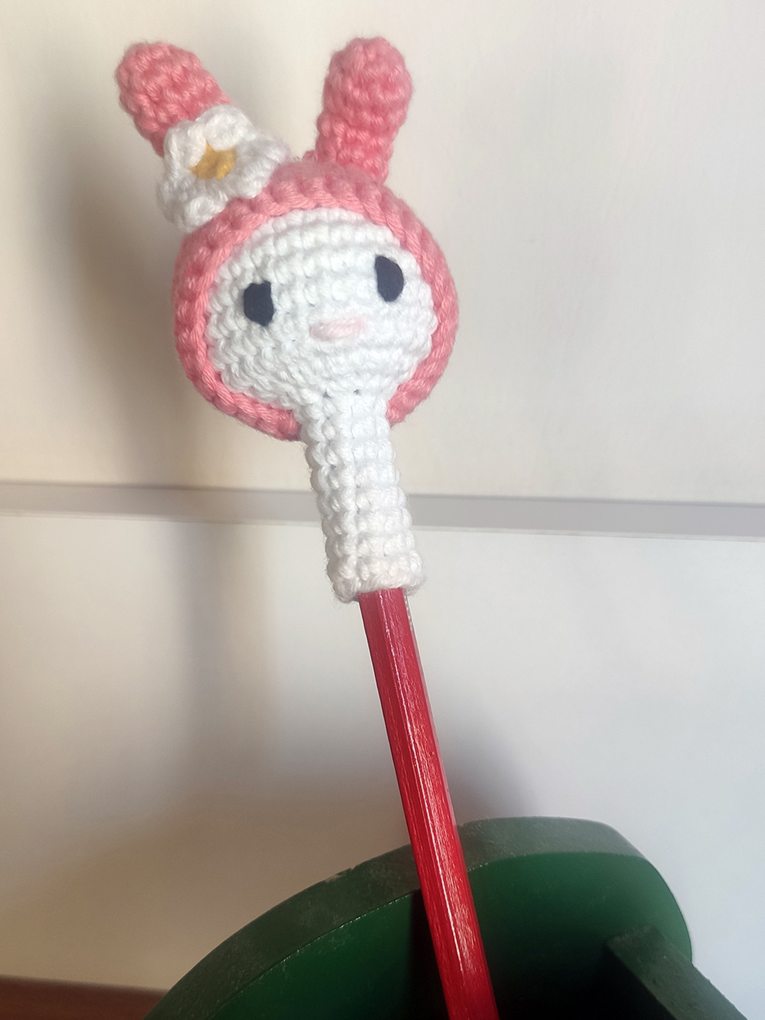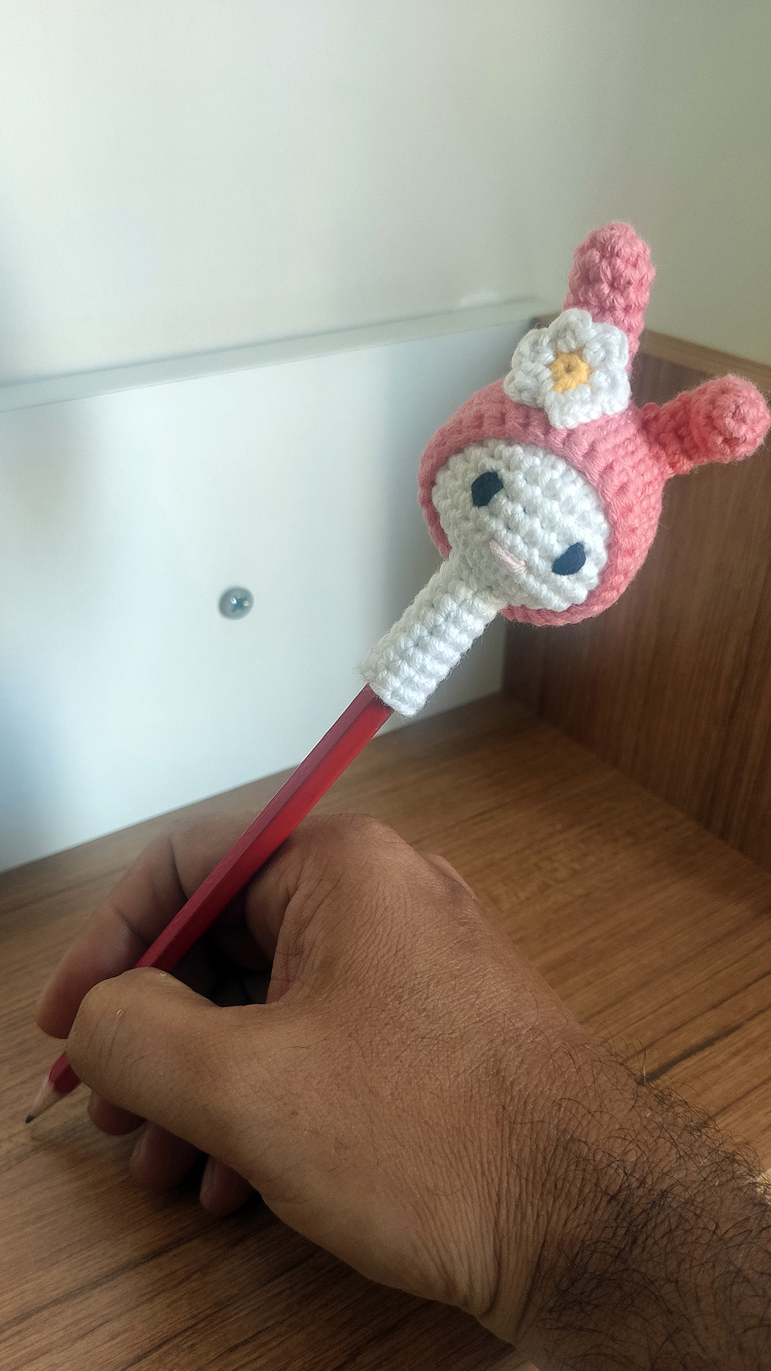 Çalışma masanıza ve yazılarınıza biraz neşe ve bolca karakter katın! Japon “kawaii” kültürünün sevilen, havalı ve biraz da yaramaz karakteri, şimdi el yapımı amigurumi kalem başlığı formuyla karşınızda. Bu sevimli figür, en sıkıcı dersleri veya işleri bile eğlenceli bir maceraya dönüştürecek.