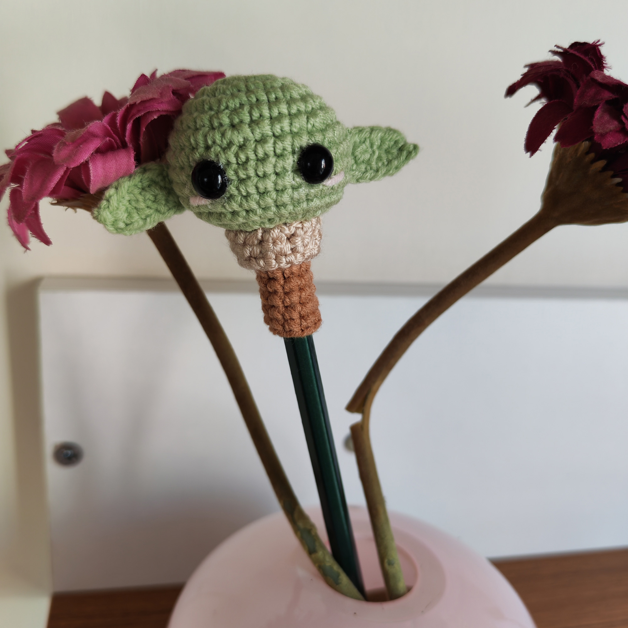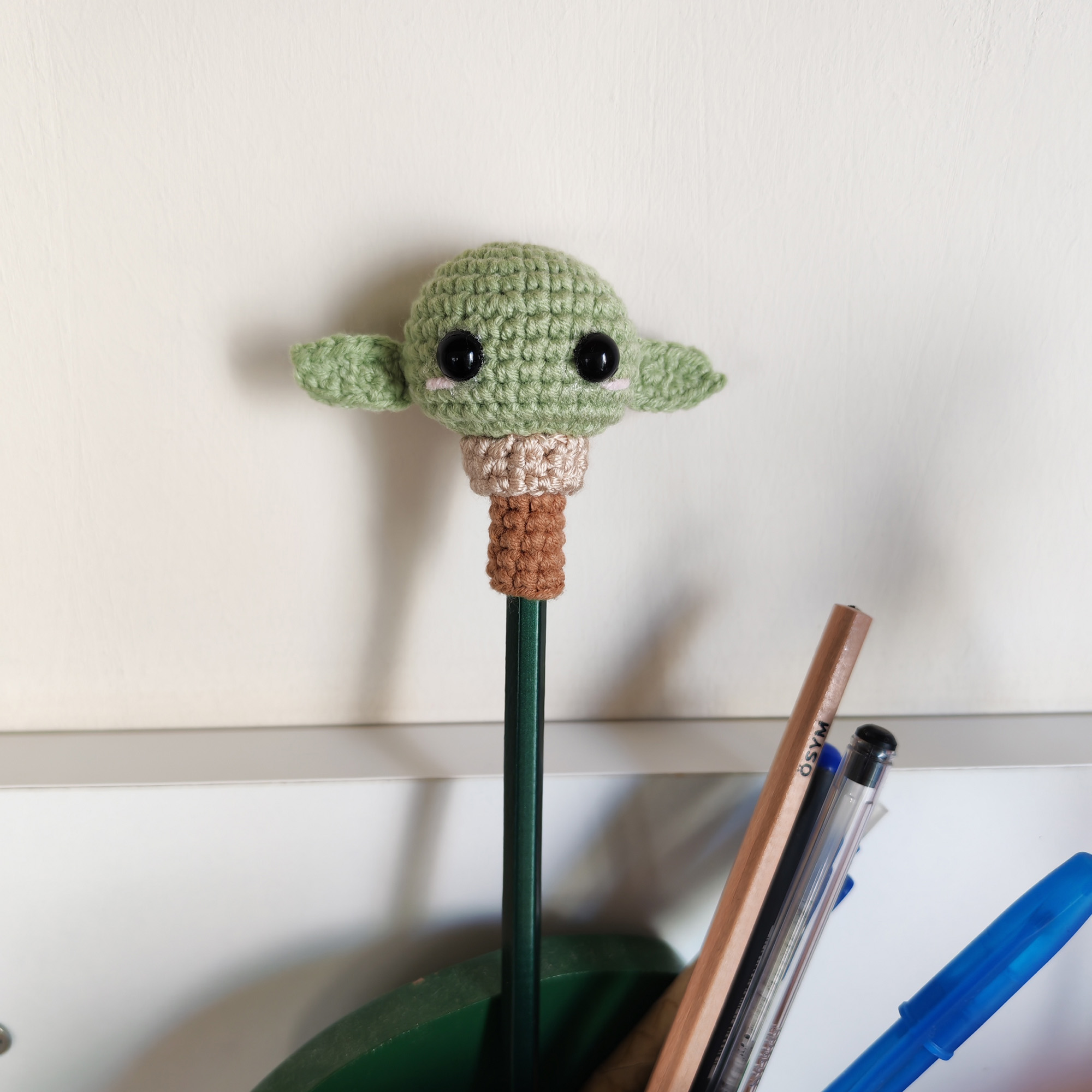 Çalışma masanıza ve yazılarınıza biraz neşe ve bolca karakter katın! Japon “kawaii” kültürünün sevilen, havalı ve biraz da yaramaz karakteri, şimdi el yapımı amigurumi kalem başlığı formuyla karşınızda. Bu sevimli figür, en sıkıcı dersleri veya işleri bile eğlenceli bir maceraya dönüştürecek.