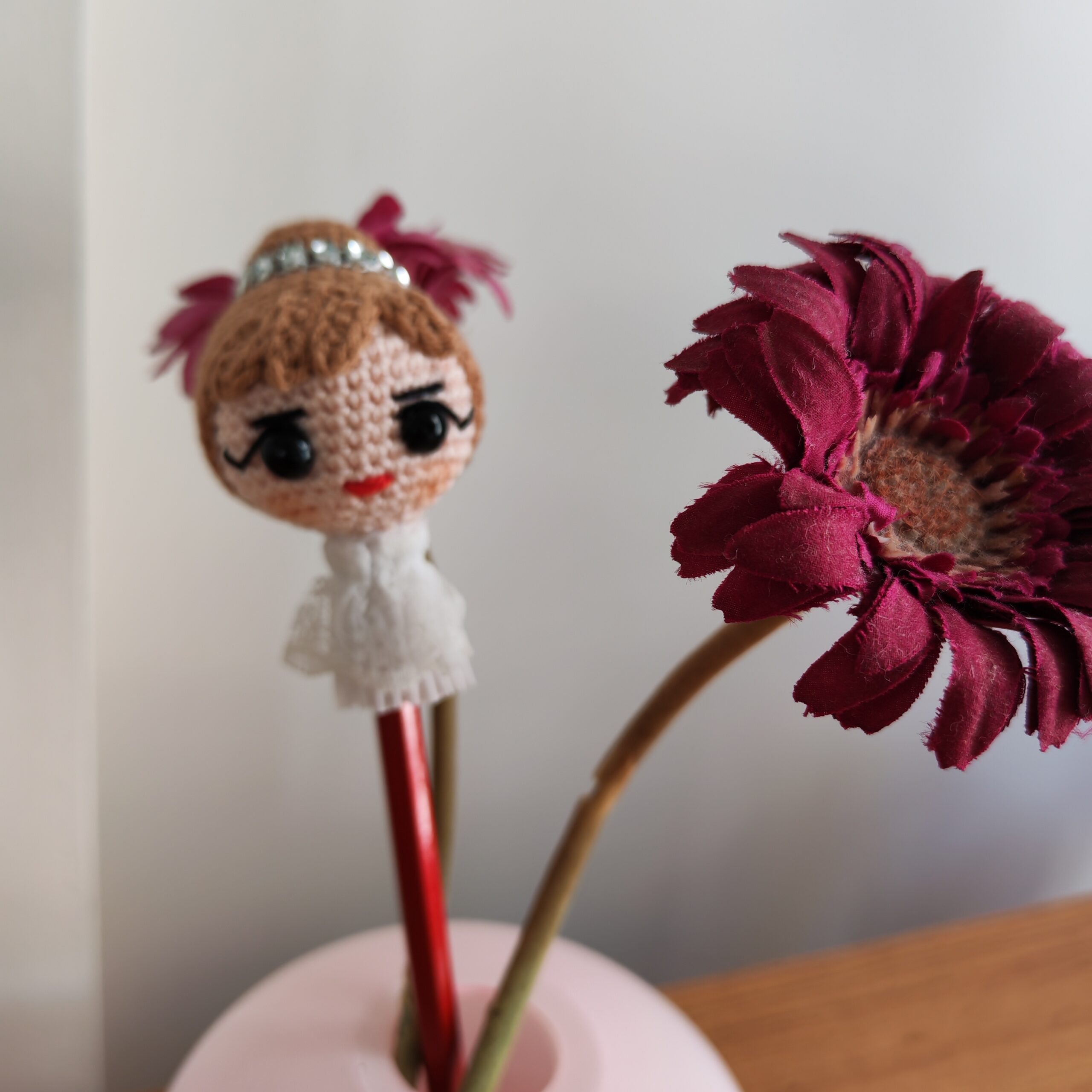 Çalışma masanıza ve yazılarınıza biraz neşe ve bolca karakter katın! Japon “kawaii” kültürünün sevilen, havalı ve biraz da yaramaz karakteri, şimdi el yapımı amigurumi kalem başlığı formuyla karşınızda. Bu sevimli figür, en sıkıcı dersleri veya işleri bile eğlenceli bir maceraya dönüştürecek.