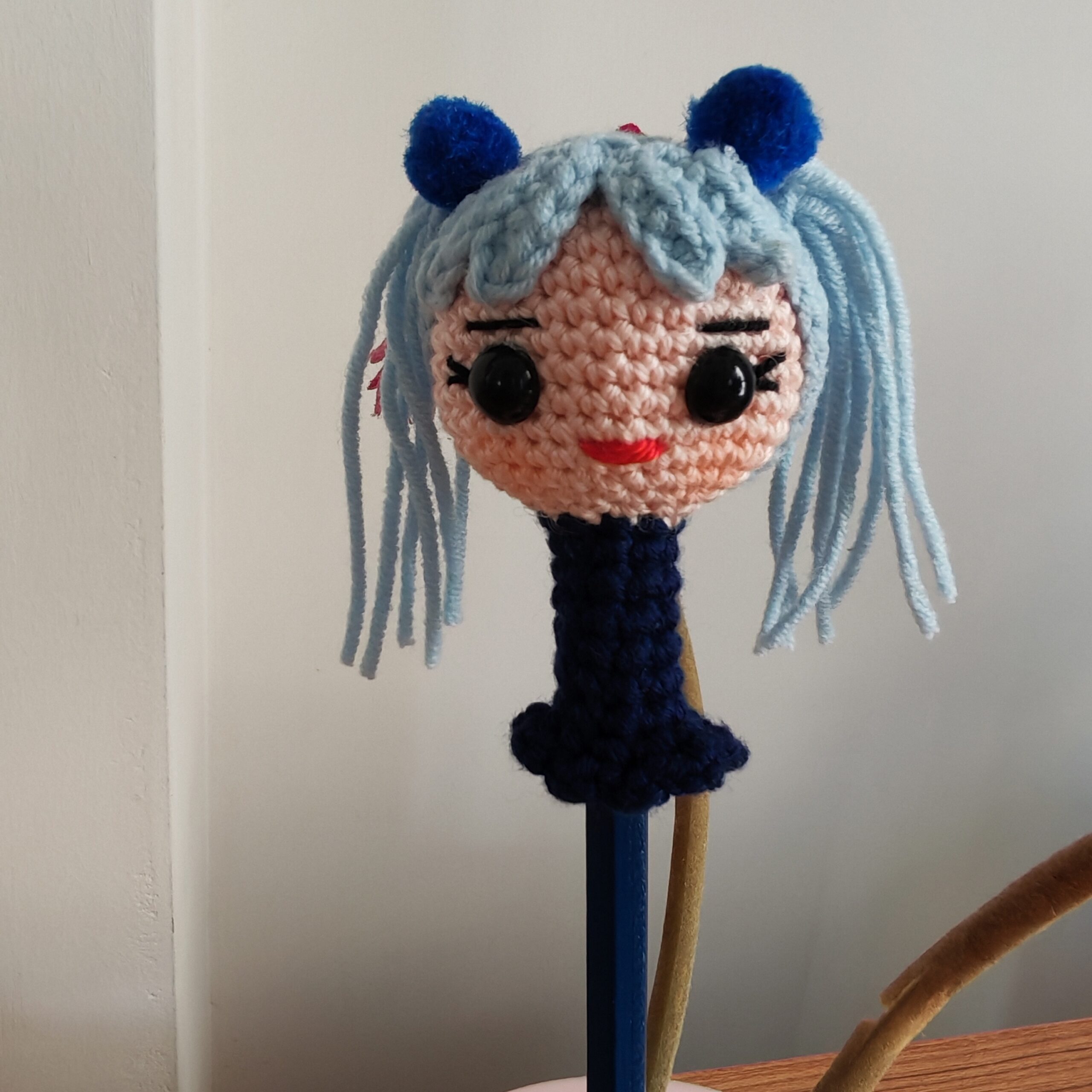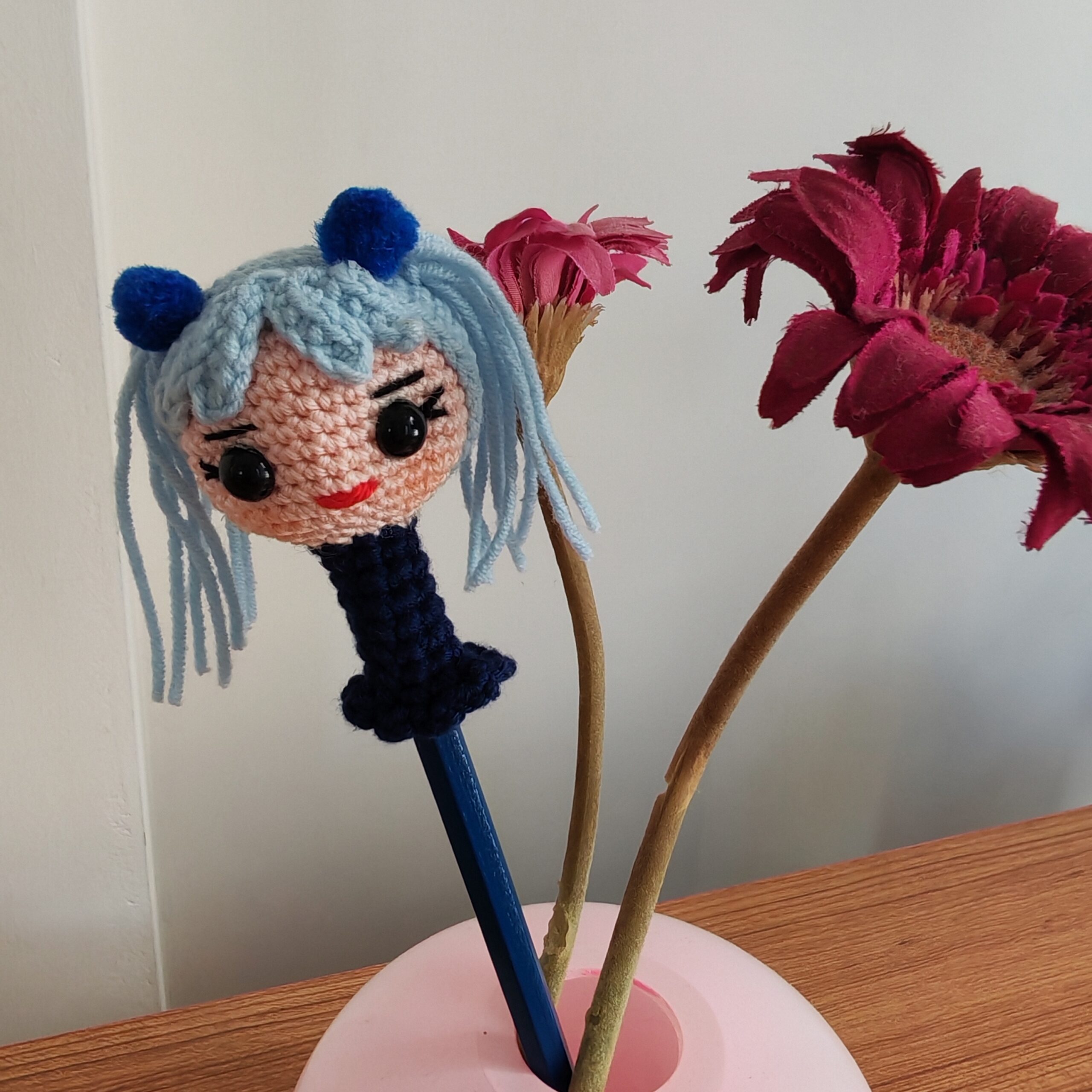 Çalışma masanıza ve yazılarınıza biraz neşe ve bolca karakter katın! Japon “kawaii” kültürünün sevilen, havalı ve biraz da yaramaz karakteri, şimdi el yapımı amigurumi kalem başlığı formuyla karşınızda. Bu sevimli figür, en sıkıcı dersleri veya işleri bile eğlenceli bir maceraya dönüştürecek.