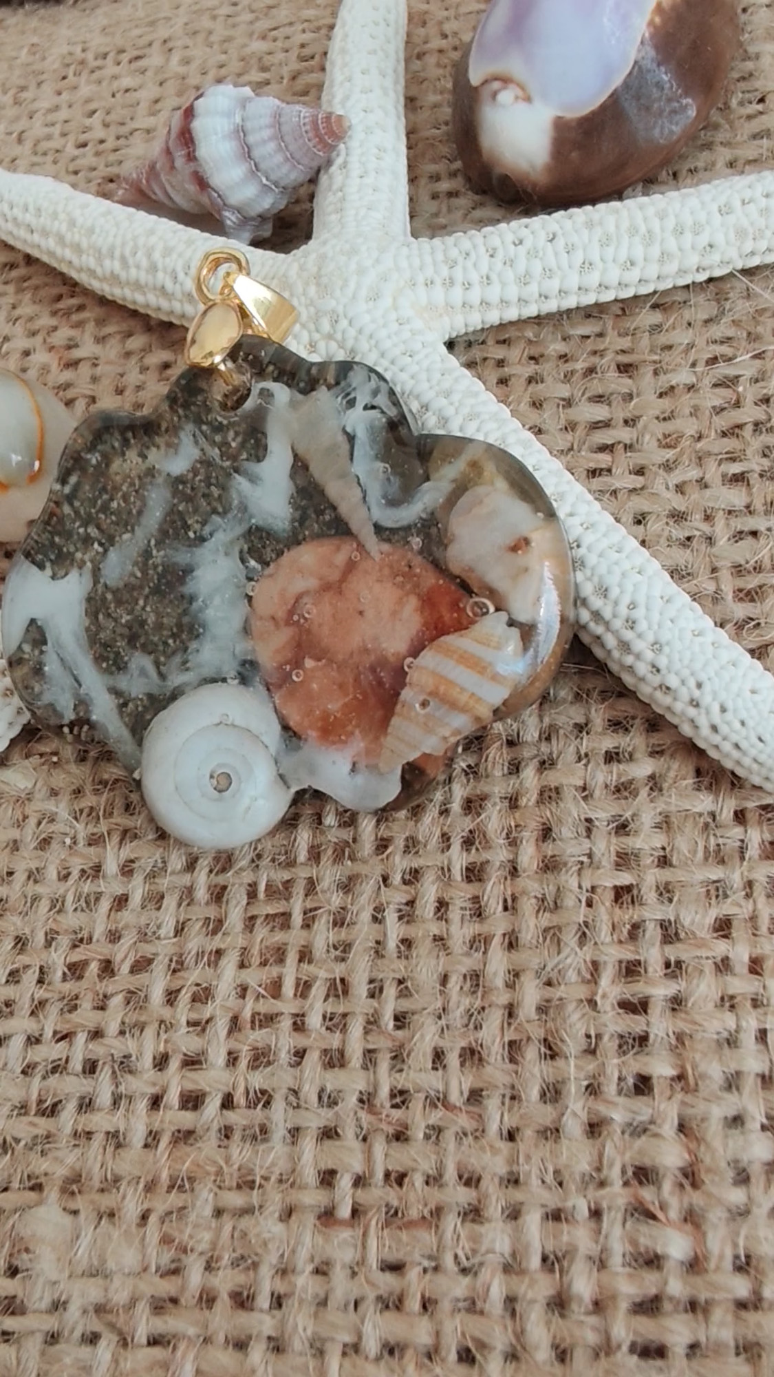 Her biri benzersiz ve tamamen elde hazırlanan bu özel kolye uçları, gerçek deniz yıldızları, kum, deniz kabukları ve doğanın eşsiz güzelliklerini şeffaf reçine içinde sonsuza dek koruyor. Denizden ilham alan bu kolye uçları, size ve sevdiklerinize okyanusun ferahlatıcı ruhunu taşıyor.