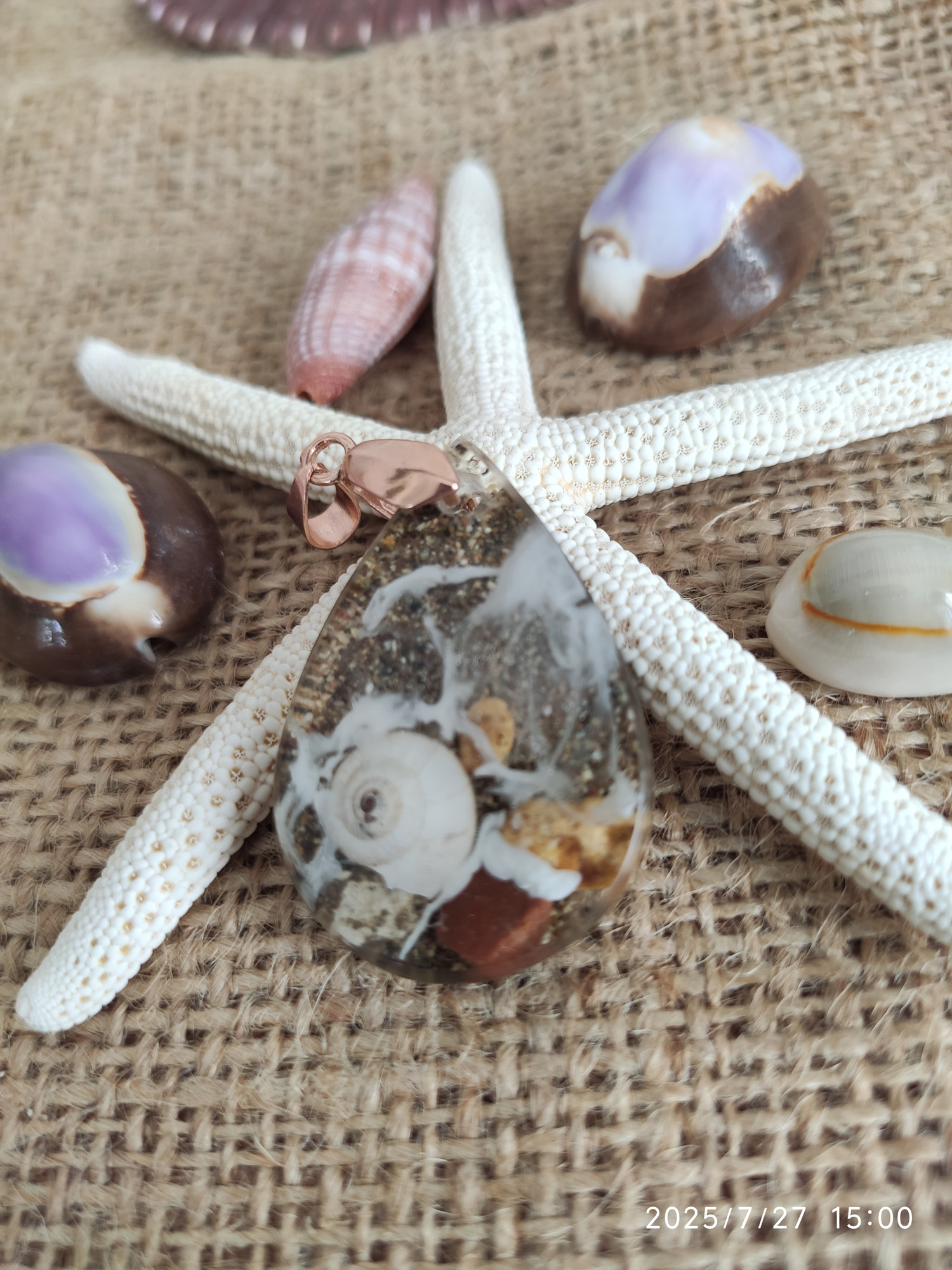 Her biri benzersiz ve tamamen elde hazırlanan bu özel kolye uçları, gerçek deniz yıldızları, kum, deniz kabukları ve doğanın eşsiz güzelliklerini şeffaf reçine içinde sonsuza dek koruyor. Denizden ilham alan bu kolye uçları, size ve sevdiklerinize okyanusun ferahlatıcı ruhunu taşıyor.