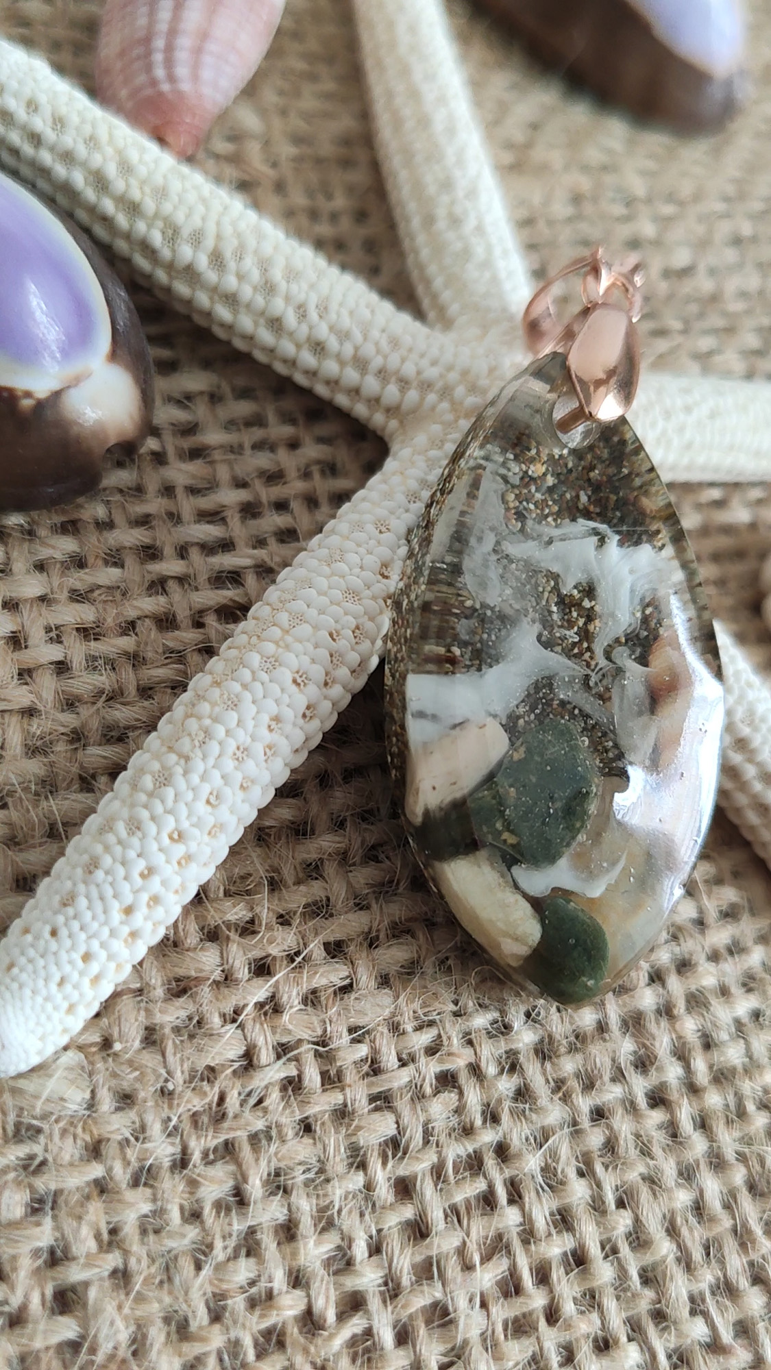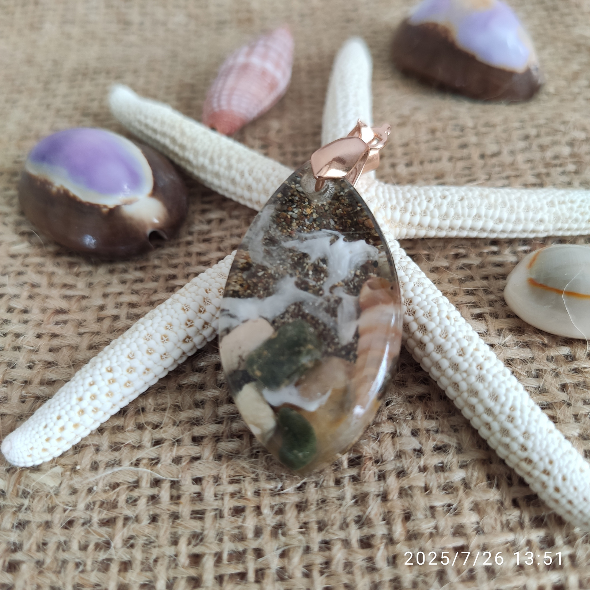 Her biri benzersiz ve tamamen elde hazırlanan bu özel kolye uçları, gerçek deniz yıldızları, kum, deniz kabukları ve doğanın eşsiz güzelliklerini şeffaf reçine içinde sonsuza dek koruyor. Denizden ilham alan bu kolye uçları, size ve sevdiklerinize okyanusun ferahlatıcı ruhunu taşıyor.