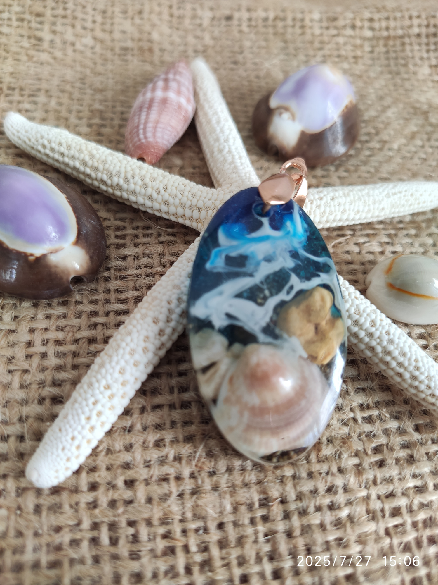 Her biri benzersiz ve tamamen elde hazırlanan bu özel kolye uçları, gerçek deniz yıldızları, kum, deniz kabukları ve doğanın eşsiz güzelliklerini şeffaf reçine içinde sonsuza dek koruyor. Denizden ilham alan bu kolye uçları, size ve sevdiklerinize okyanusun ferahlatıcı ruhunu taşıyor.