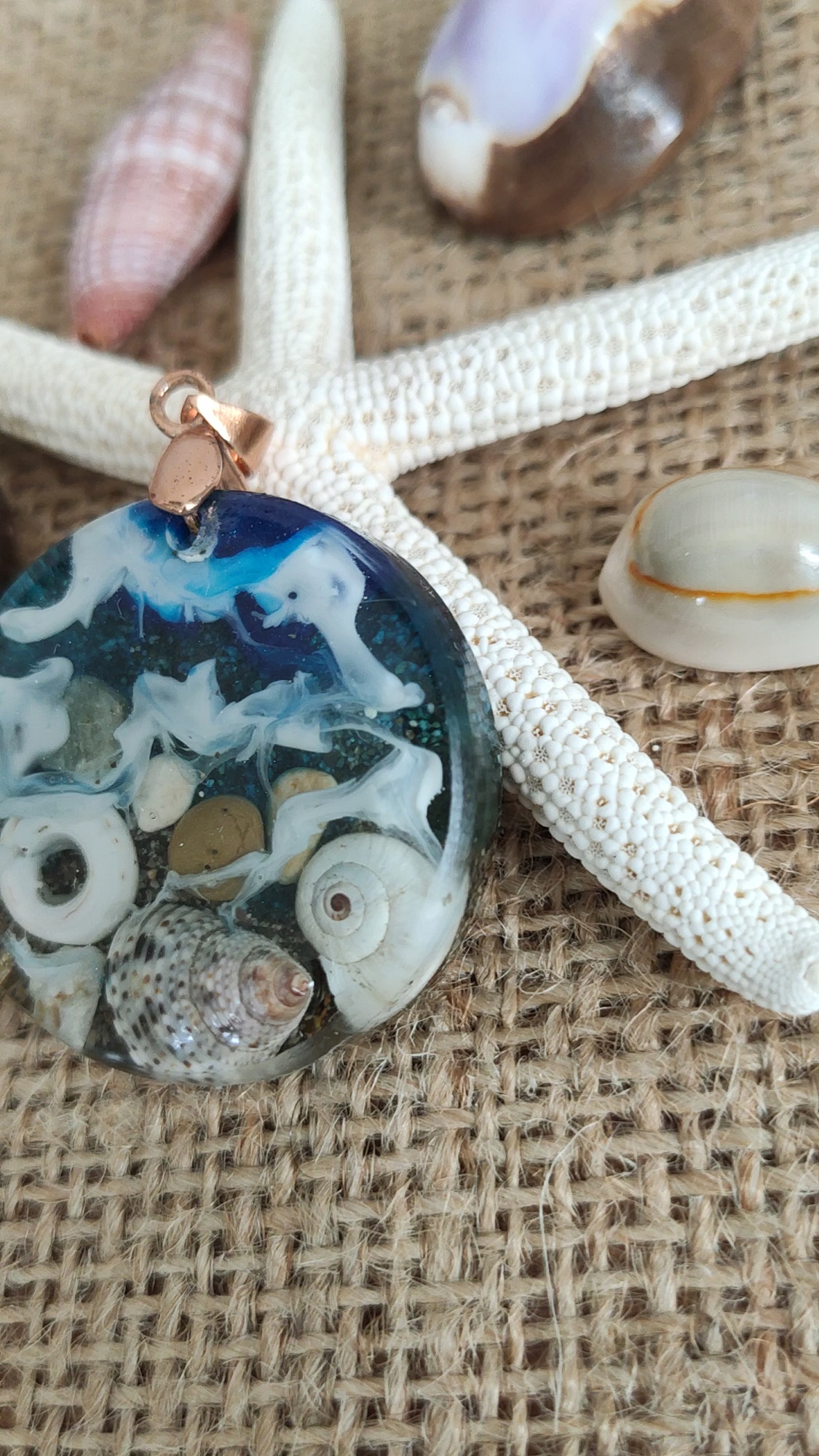Her biri benzersiz ve tamamen elde hazırlanan bu özel kolye uçları, gerçek deniz yıldızları, kum, deniz kabukları ve doğanın eşsiz güzelliklerini şeffaf reçine içinde sonsuza dek koruyor. Denizden ilham alan bu kolye uçları, size ve sevdiklerinize okyanusun ferahlatıcı ruhunu taşıyor.