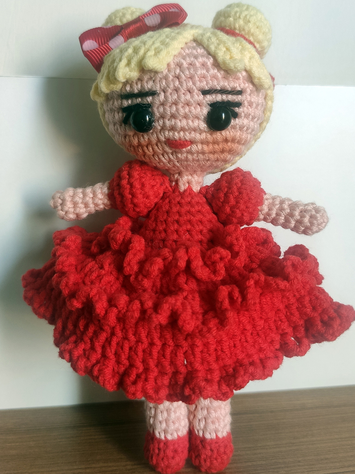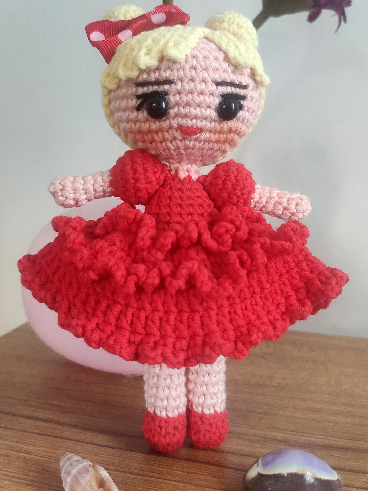 Sahne Yıldızı: Kırmızı Elbiseli Amigurumi Bebek