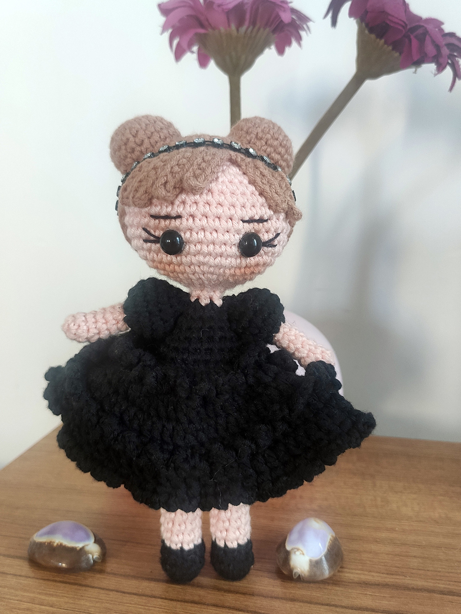 Siyah Kuğu Zarafeti: Siyah Elbiseli Amigurumi Bebek